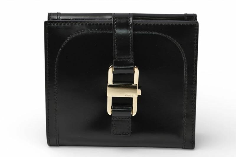 Gucci wallet, unused, vintage, folding wallet, 035.3731, enamel, black [pre-owned]