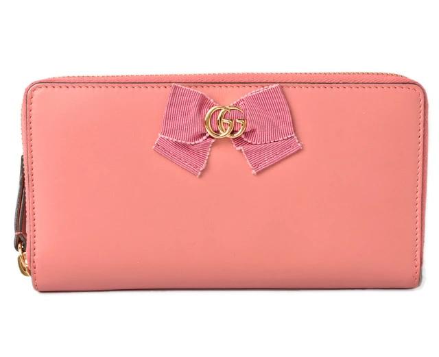 GUCCI 長財布/ラウンドファスナー GGマーモント/リボン ピンク 435819 DLXWJ 5776