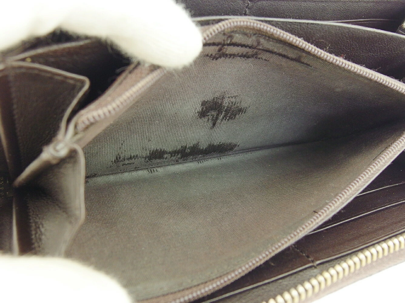 コンディション全体の状態詳細:まだまだ十分にお使いいただけます。外側ファスナーが閉まりません。内側ファスナーにプルにに社外リペア跡あり 外側コバ カード入れに社外着色リペア跡あり。その他、スレ 傷 汚れ シワ 金具ハゲ 内側にペン跡 などの一般的使用感があります。