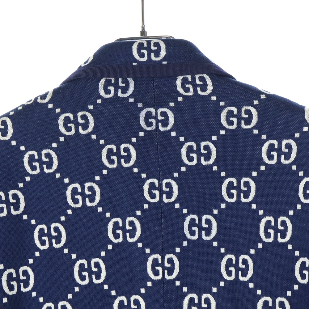 [モデル]18AW GG Jacquard Jacket ジャガード ウール パイピング 2B シングルテーラード ジャケット ネイビー 521889 Z372F