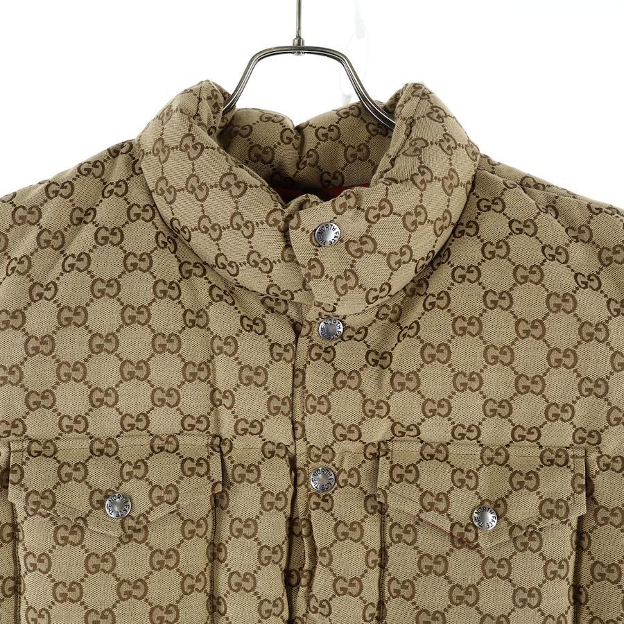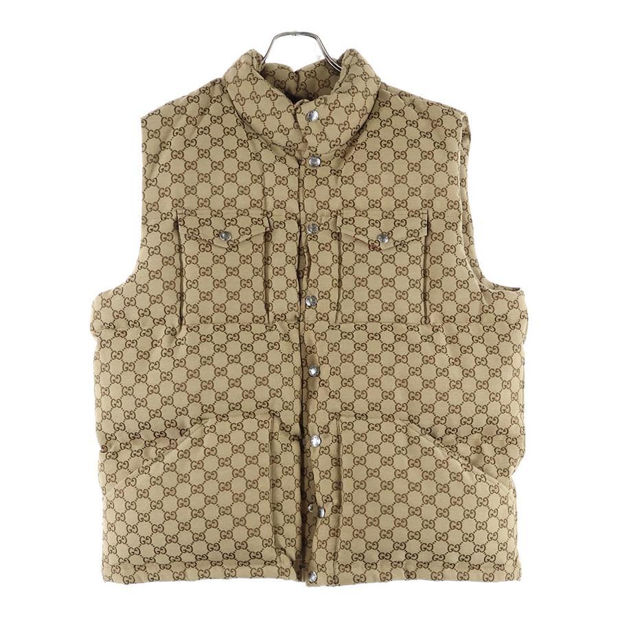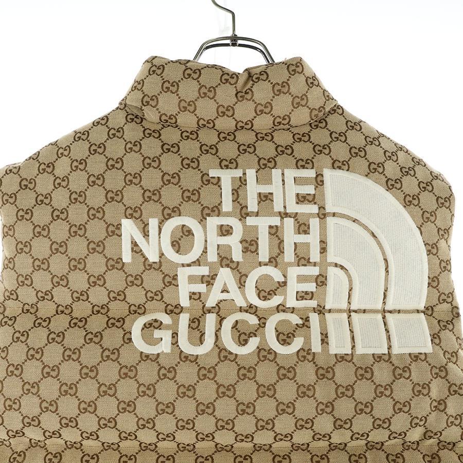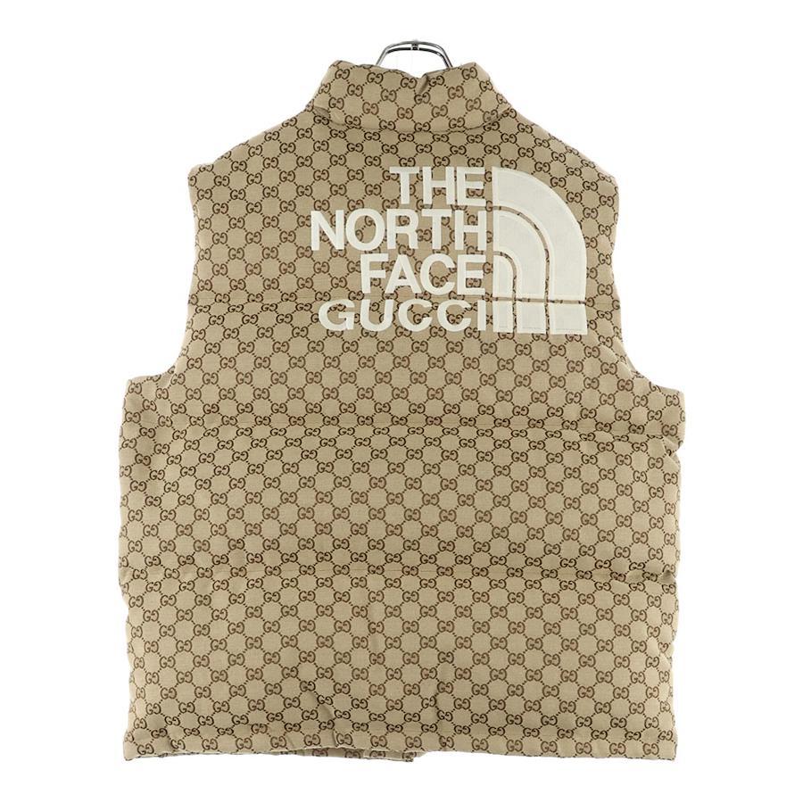 [モデル]21AW×THE NORTH FACE ノースフェイス GG総柄 ボタンダウン ダウンベスト ベージュ 670768 Z8APY