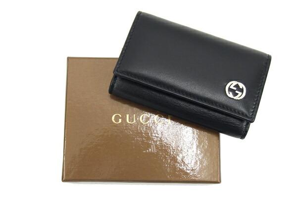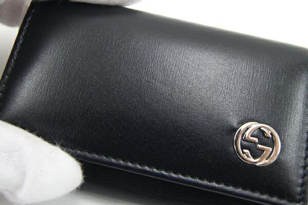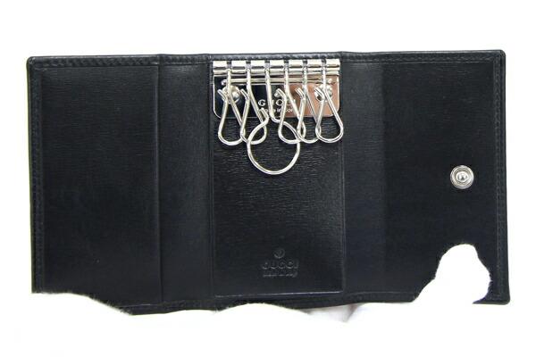 グッチ6連キーケースインターロッキングG115225ブラックレザー中古鍵カギキーリングメンズ男性GUCCI