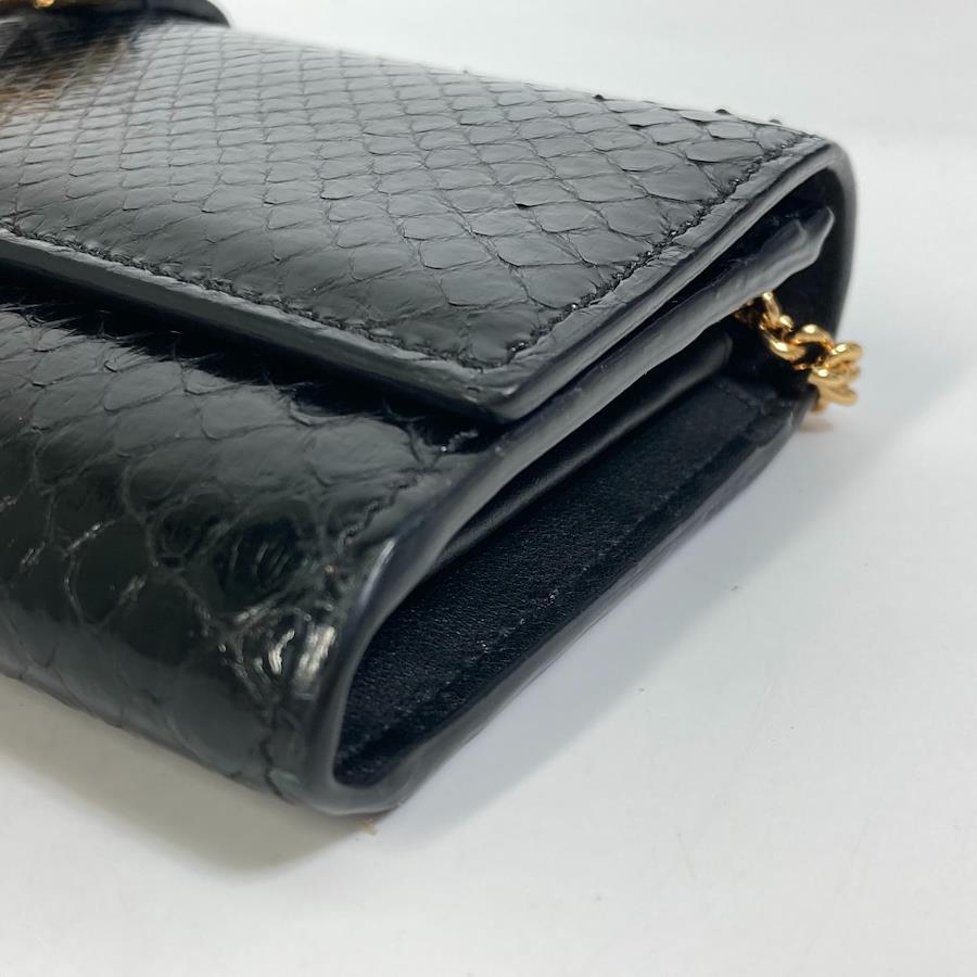 【商品説明】ジャッキー 1961ラインにチェーンウォレットが登場。ブレシャスなブラックのパイソンで仕立てました。このラインの象徴である、アーカイブデザインに由来するピストン クロージャーのディテールが、スリムなシェイプとエレガントな表情を引き立てています。