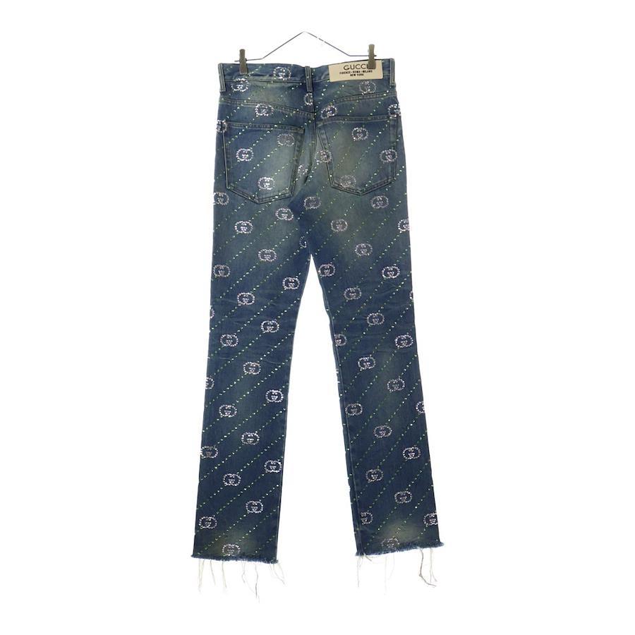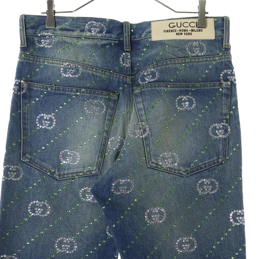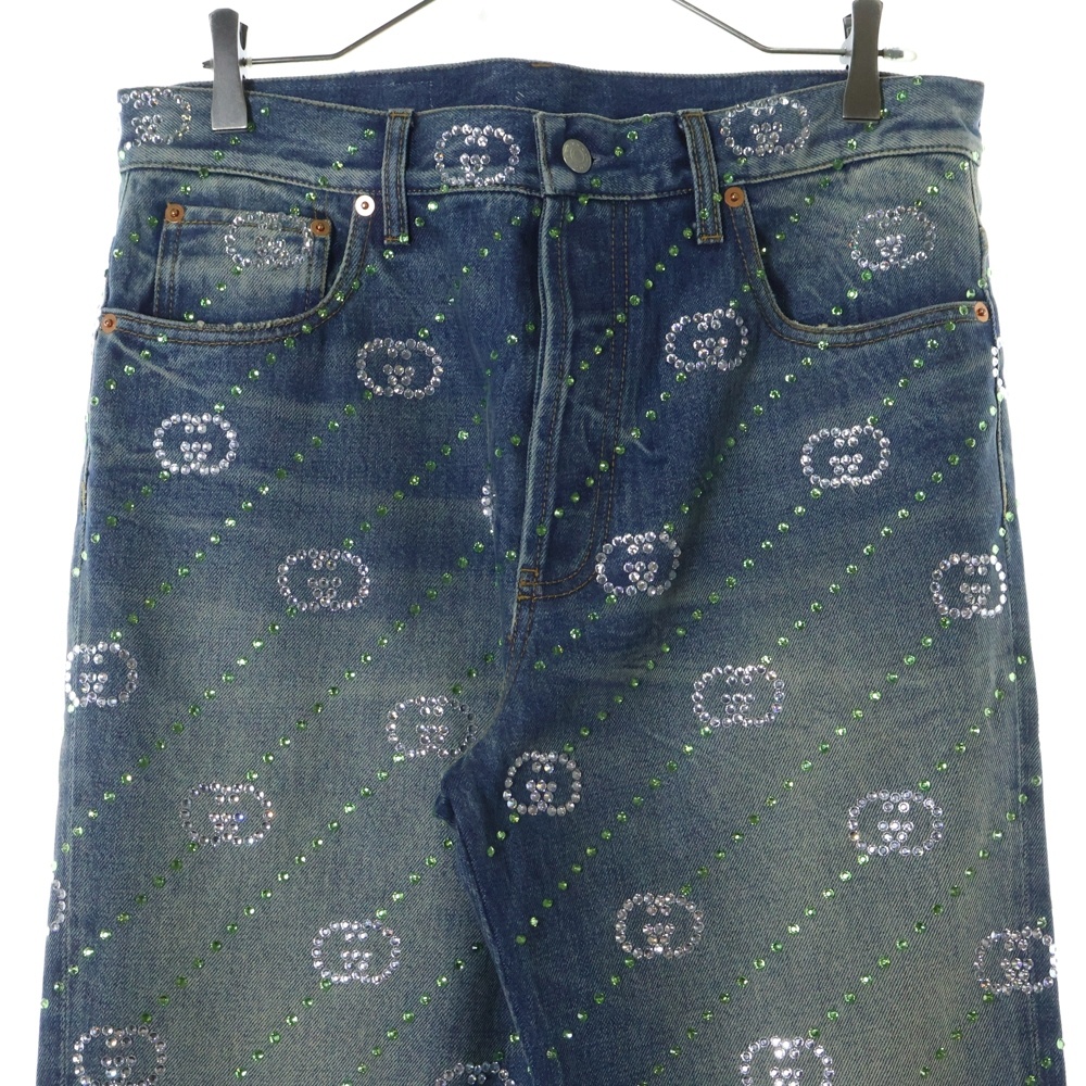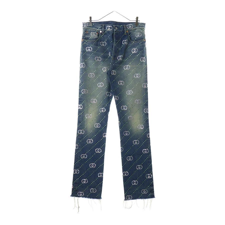 [モデル]Crystal Interlocking G Denim Pant インターロッキング GGロゴ 総柄 クリスタル装飾 デニムパンツ インディゴ 760957 XDCOT