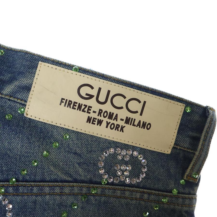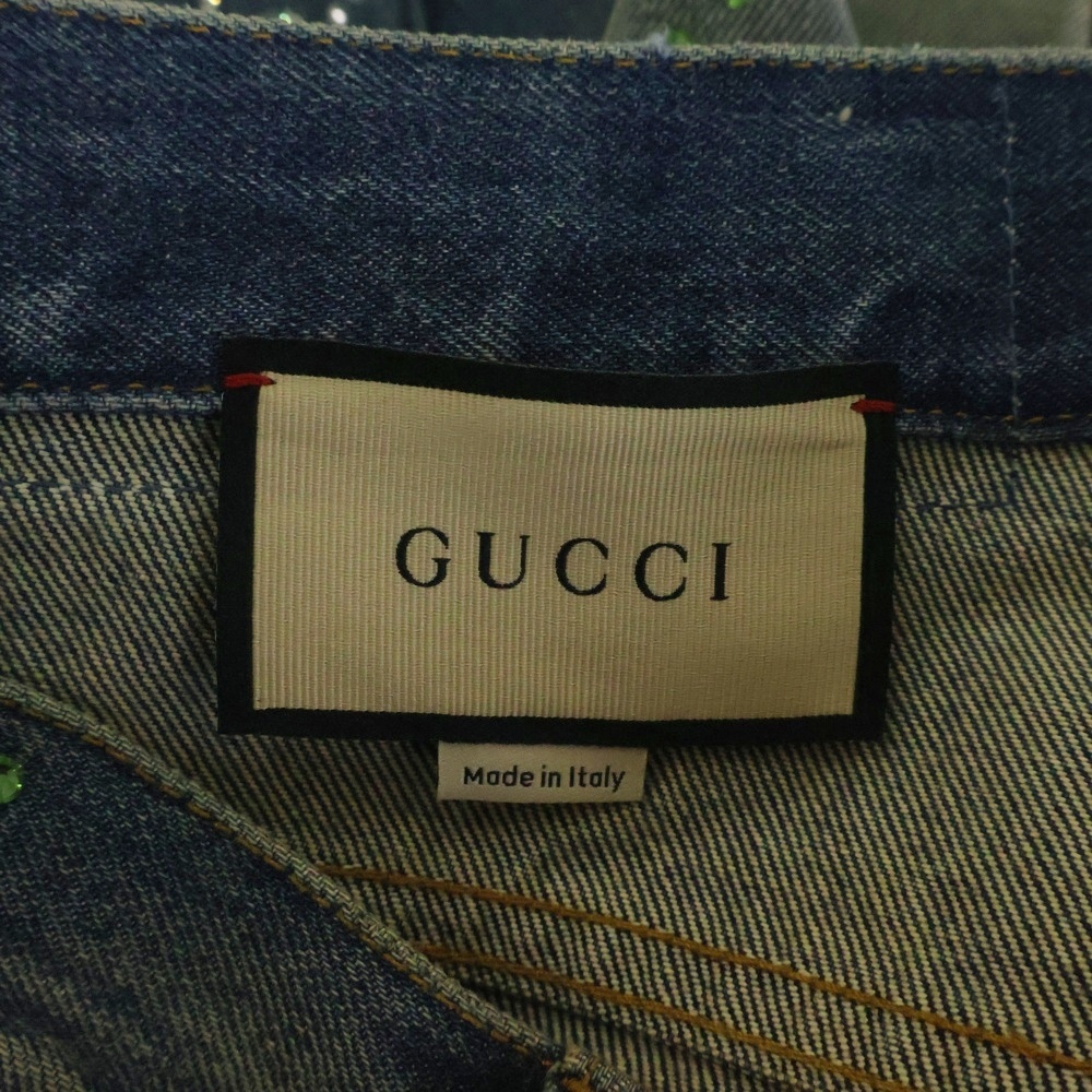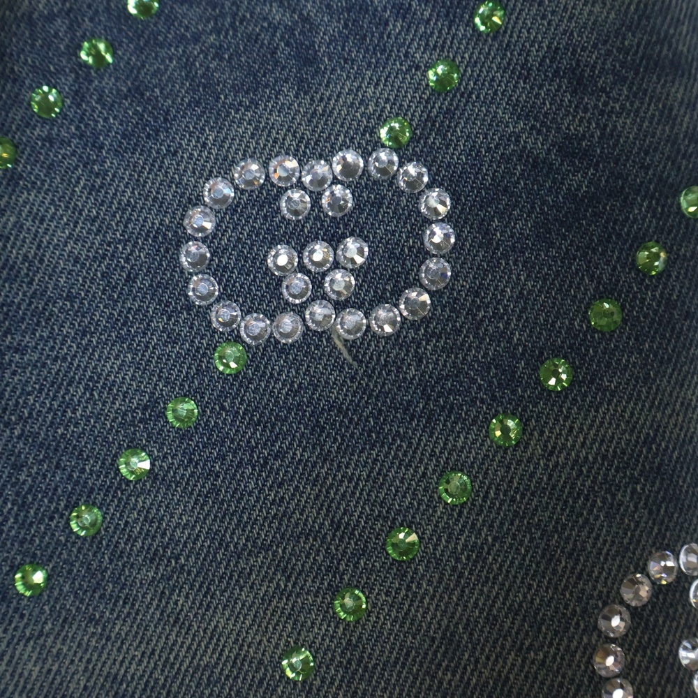 [モデル]Crystal Interlocking G Denim Pant インターロッキング GGロゴ 総柄 クリスタル装飾 デニムパンツ インディゴ 760957 XDCOT