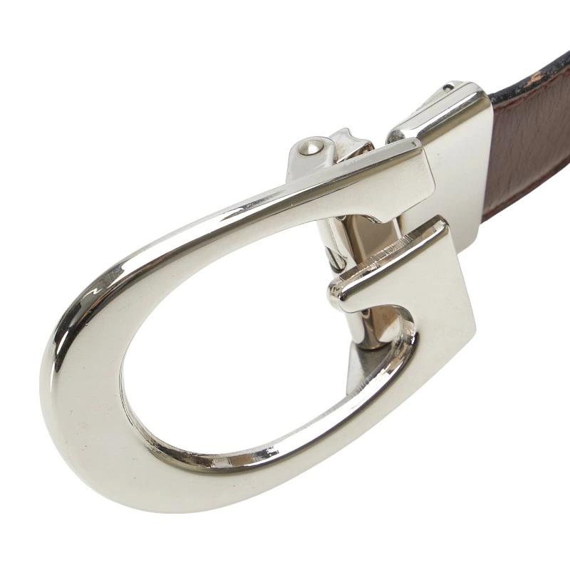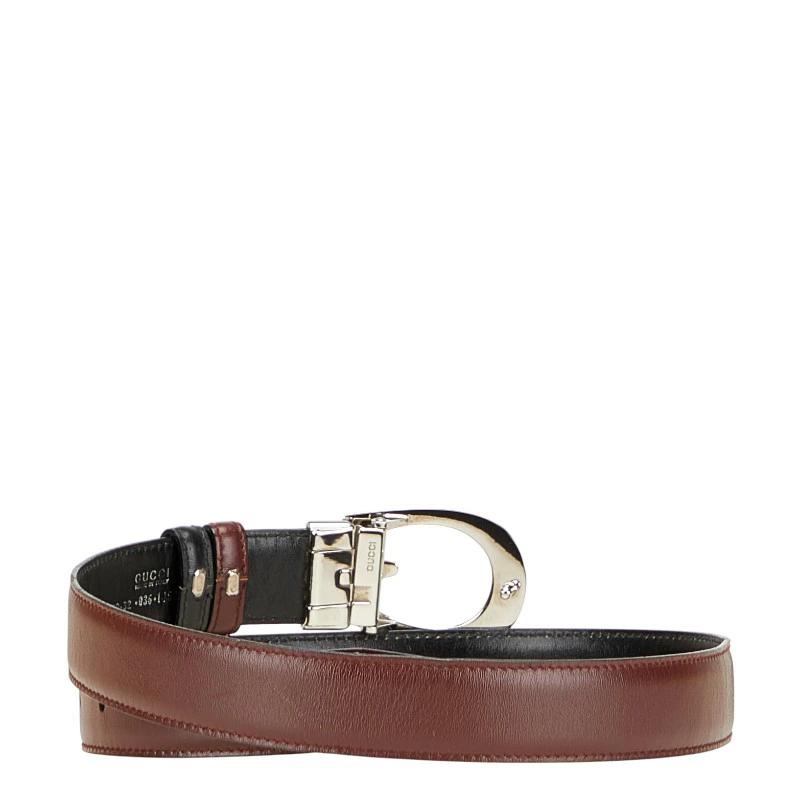 Pre-owned Gucci G Buckle Belt 80.32 036 1450 1103 Wine Red and Silver Leather Women's GUCCI