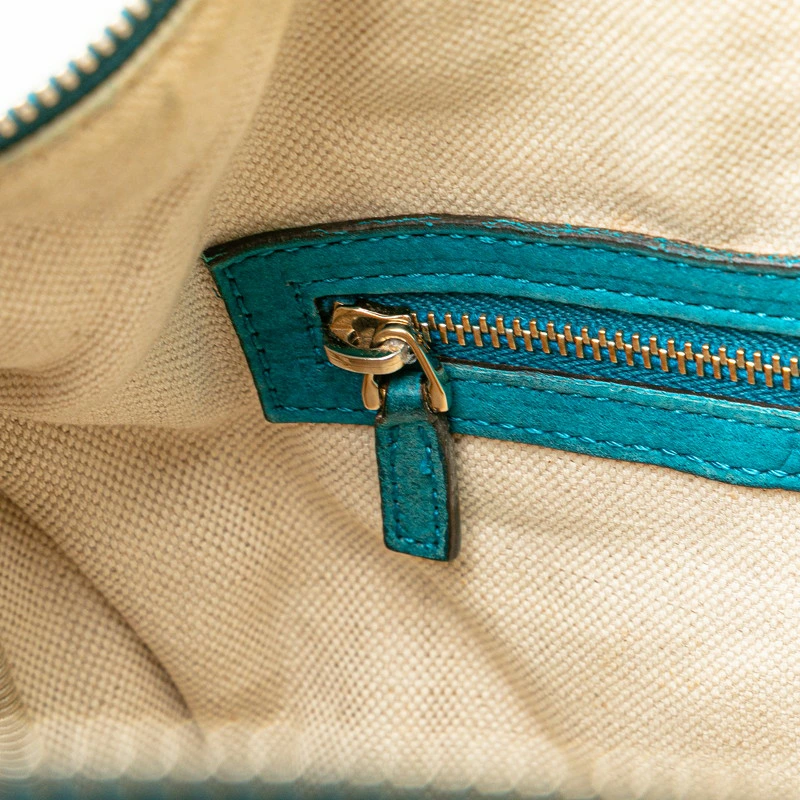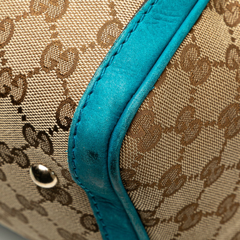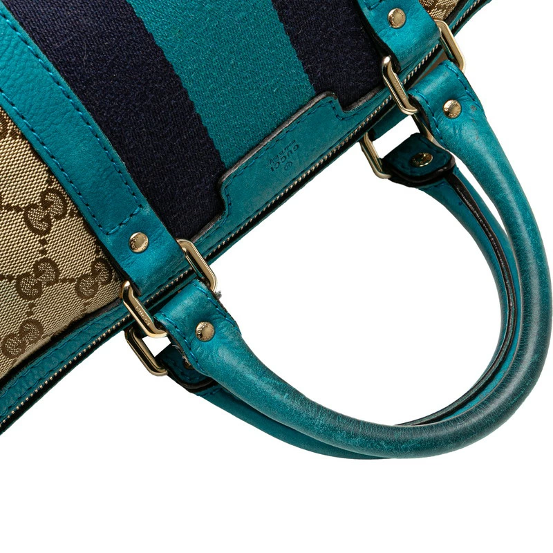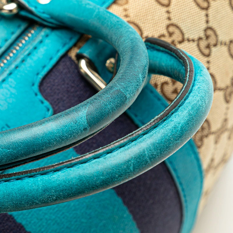 - グッチ GGキャンバス シェリーライン ミニボストンバッグ ショルダーバッグ 2WAY 247205 ベージュ ブルー キャンバス レザー レディース GUCCI 【中古】