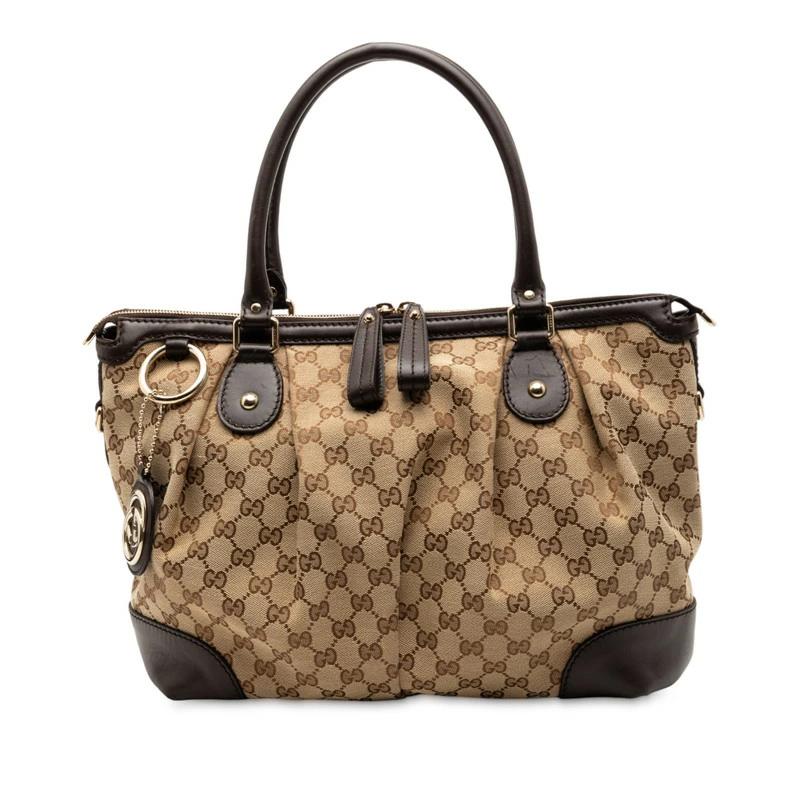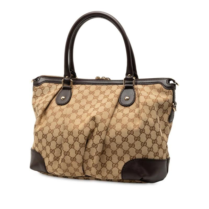 - グッチ GGキャンバス ショルダーバッグ トートバッグ 285730 ベージュ ブラウン キャンバス レザー レディース GUCCI 【中古】