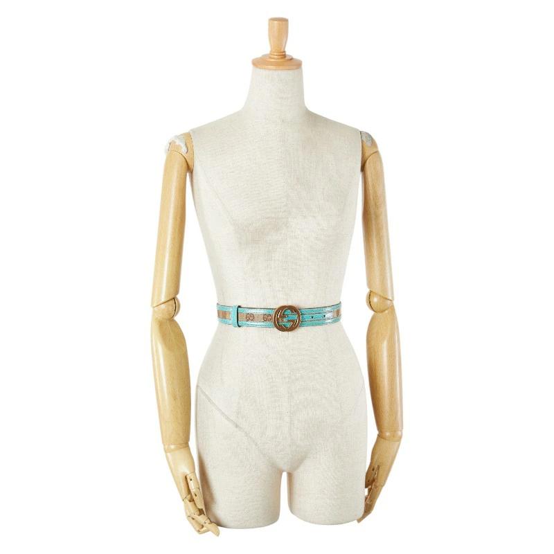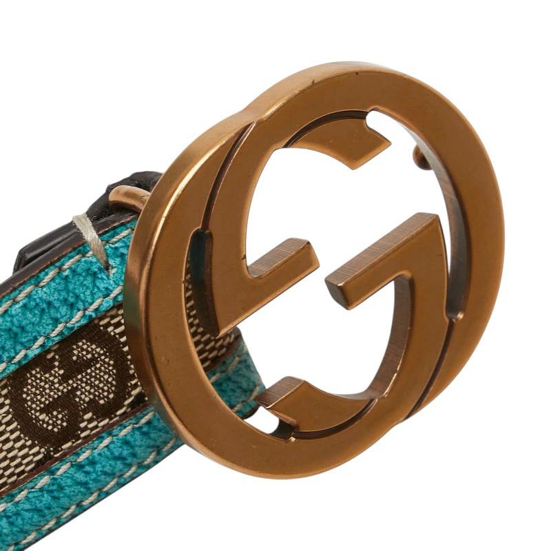 Pre-owned Gucci GG Canvas Belt, Sizes 75-30, 114874, Light Blue and Beige Leather Canvas, Women's.