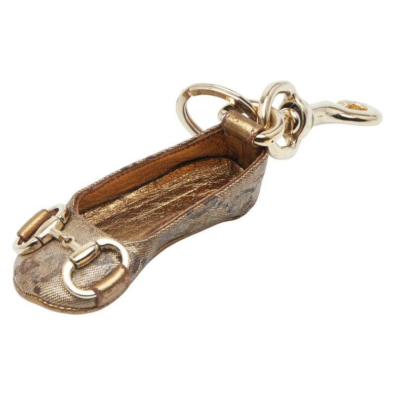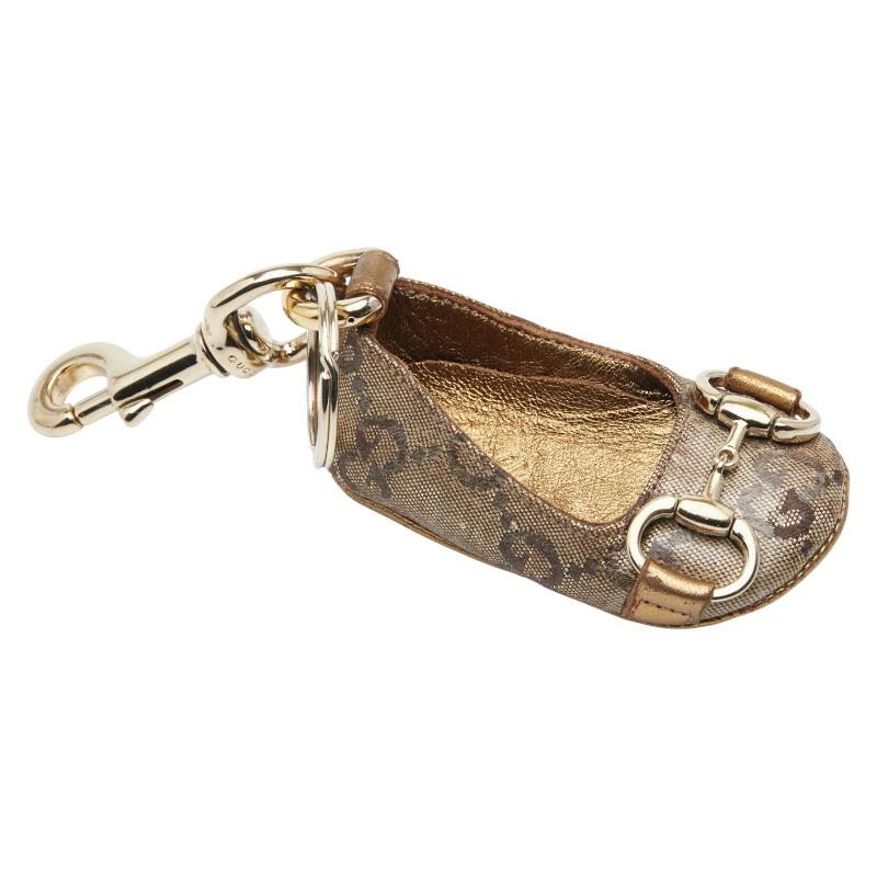 Pre-owned Gucci GG Canvas Horsebit Shoe Charm, Bag Charm, Keychain, Beige Gold Canvas with Plated Finish, Women's.
