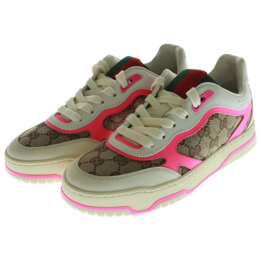 Gucci GG Canvas Reweb Low-Top Sneakers in White, Beige, and Pink (785452, Size 36 1/2)