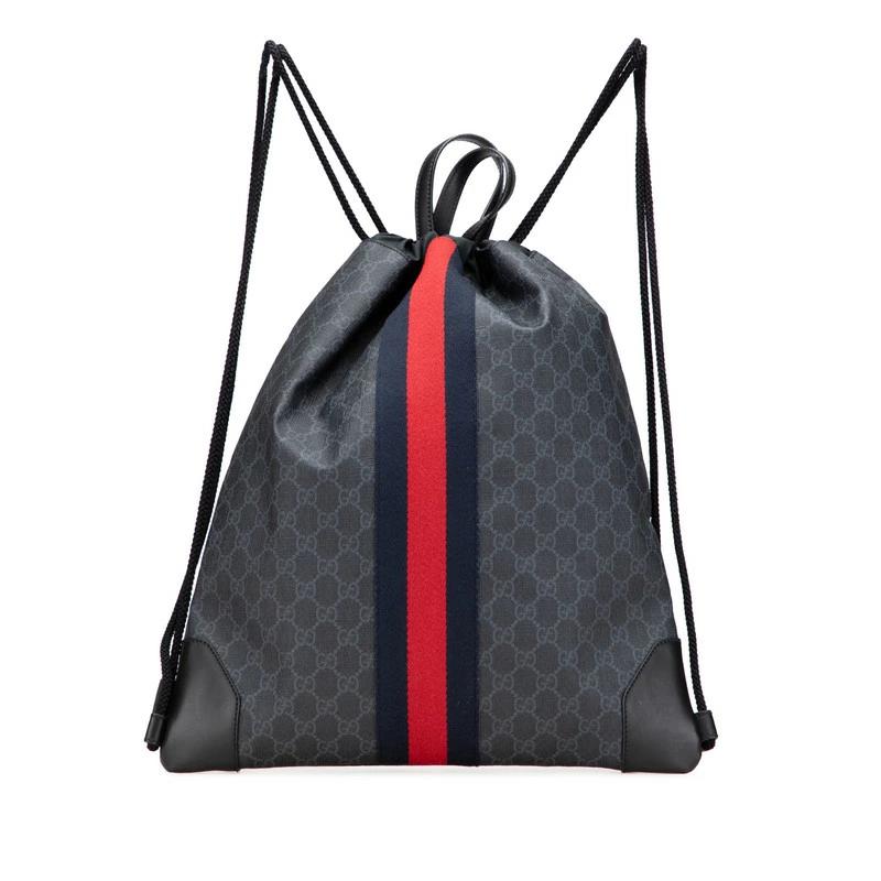- グッチ GGスプリーム リュック バックパック 473872 グレー ブラック PVC レザー レディース GUCCI 【中古】