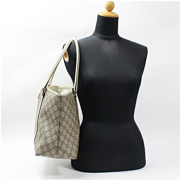 グッチ GGスプリーム トートバッグ 肩掛け 114595 PVC×レザー ベージュ×ブラウン 中古 ABランク GUCCI|レディース 女性用 通勤 通学