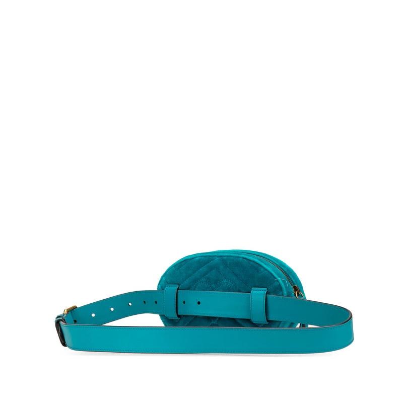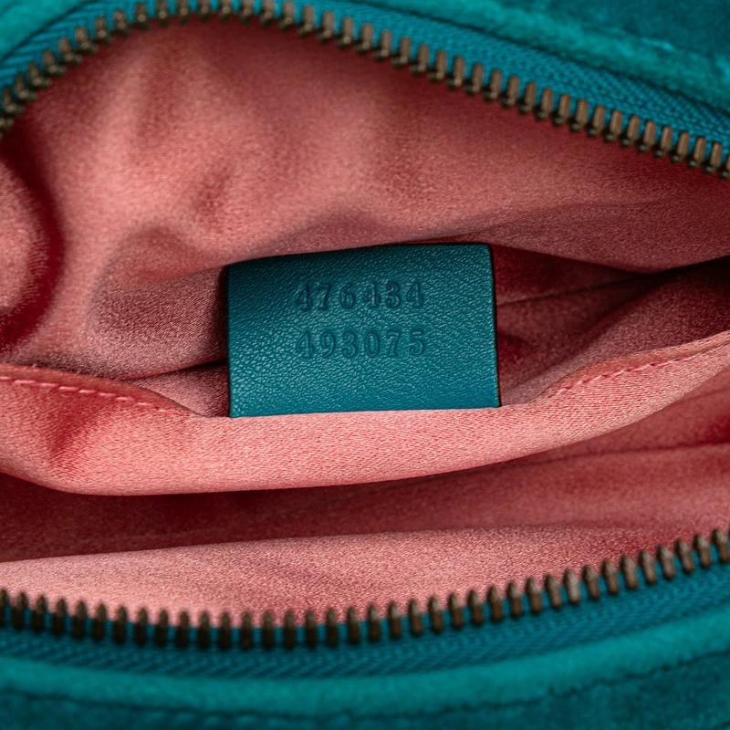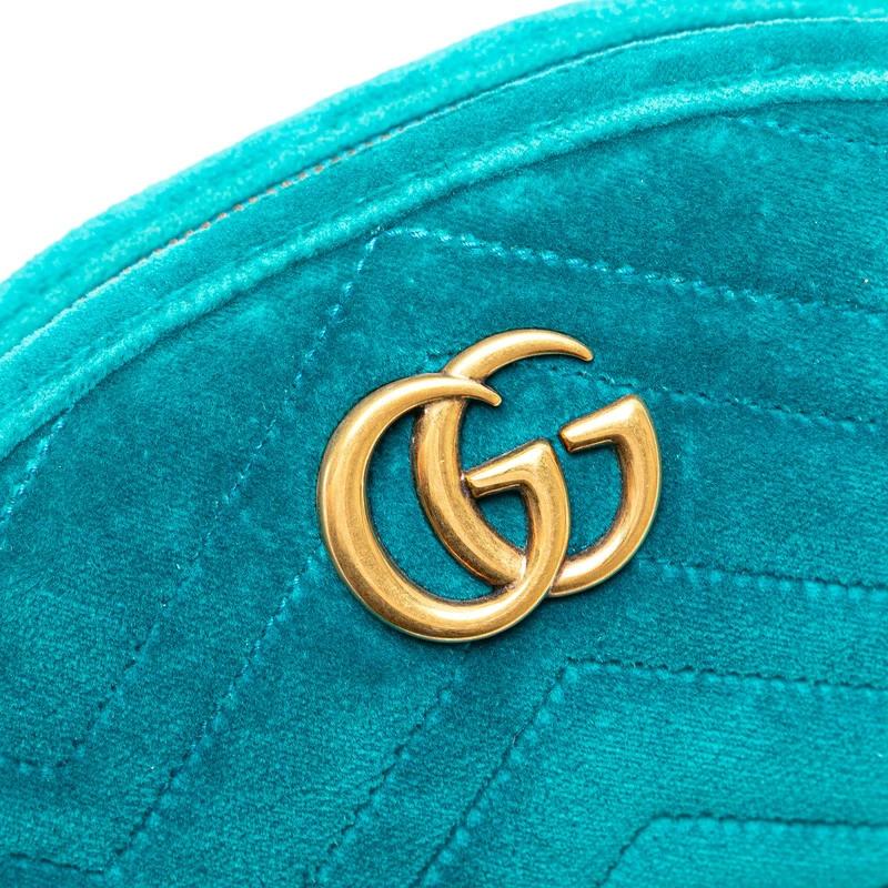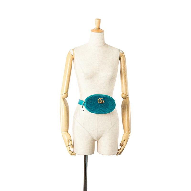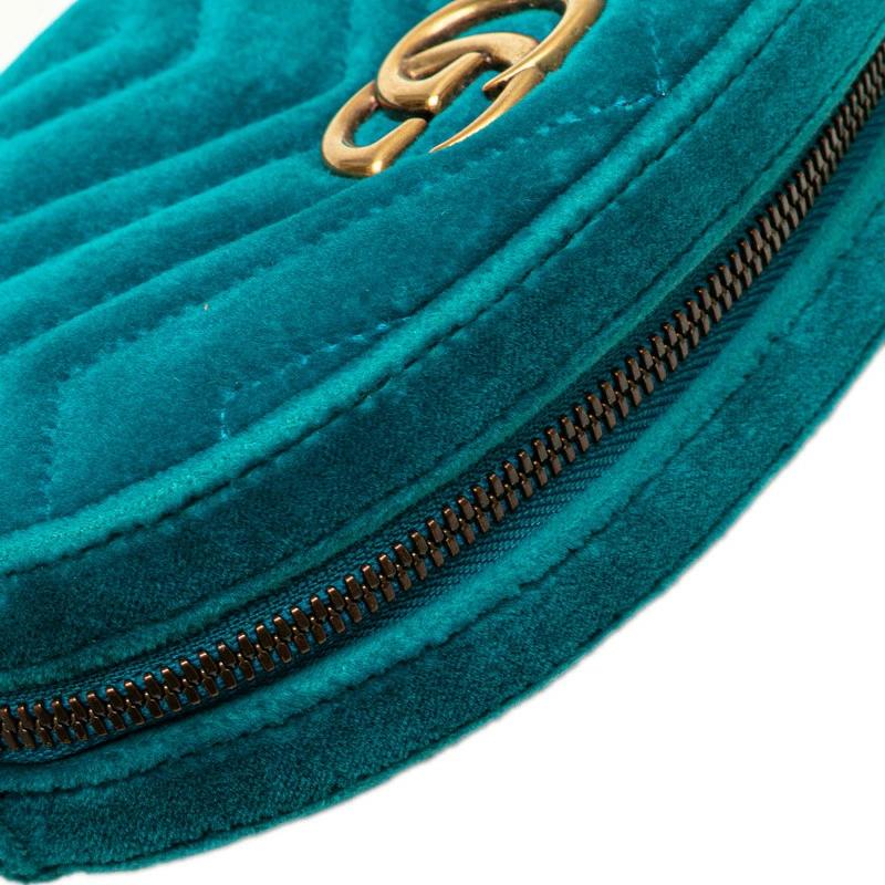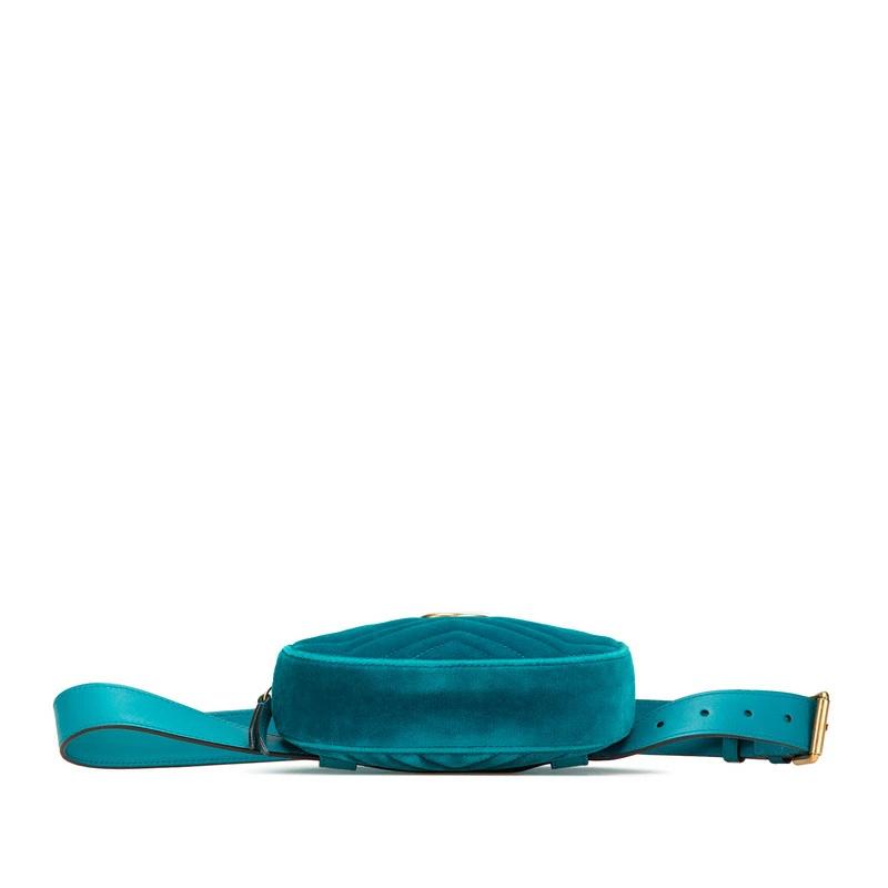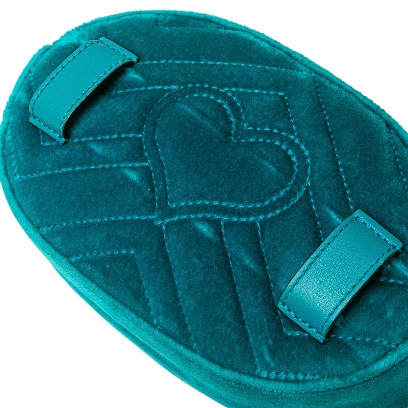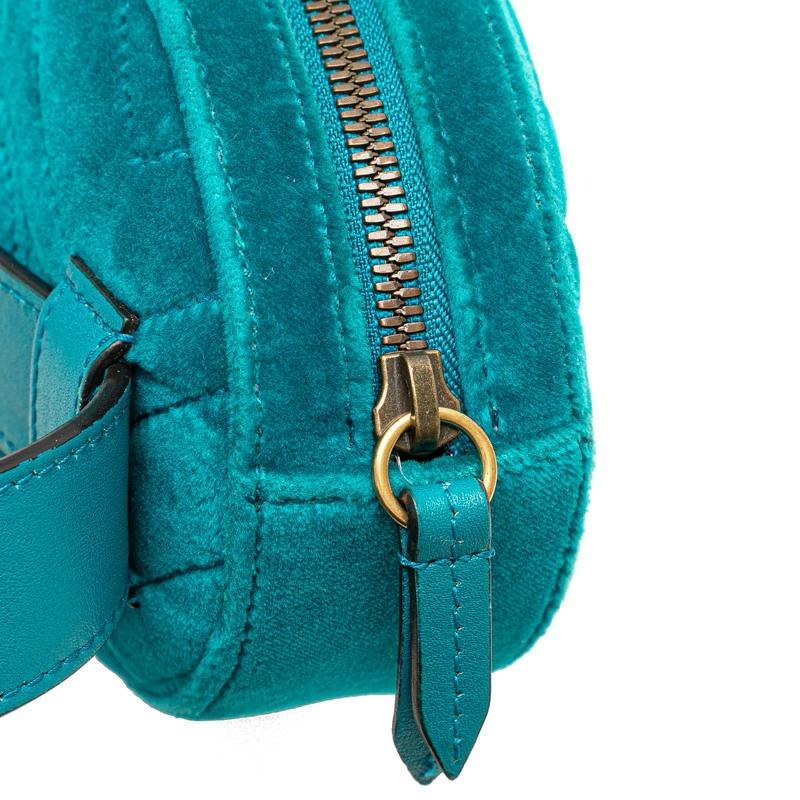 Pre-owned Gucci GG Marmont Quilted Body Bag/Waist Bag 476434 in Green and Blue Velour and Leather. Women's.