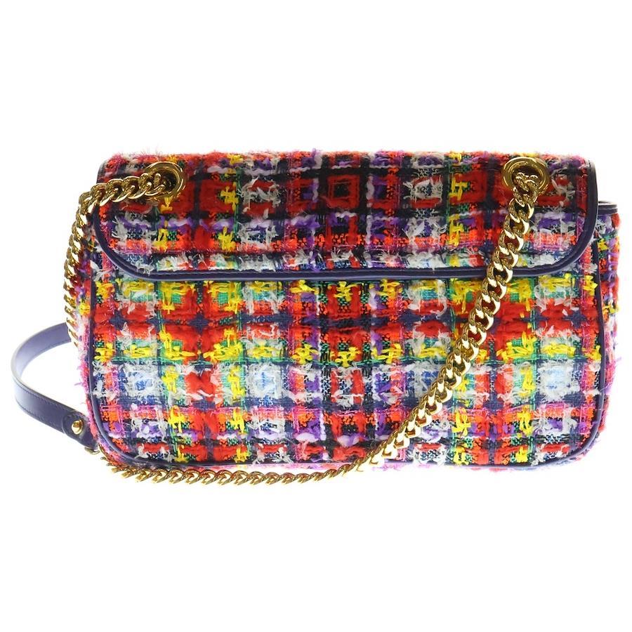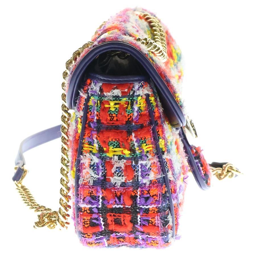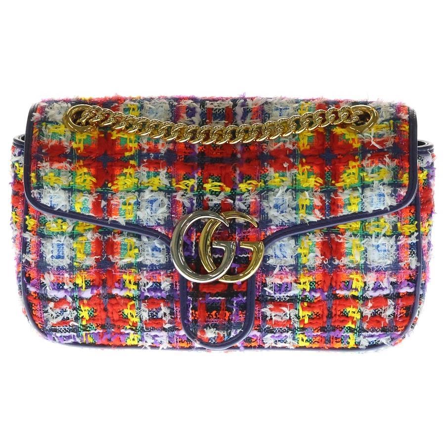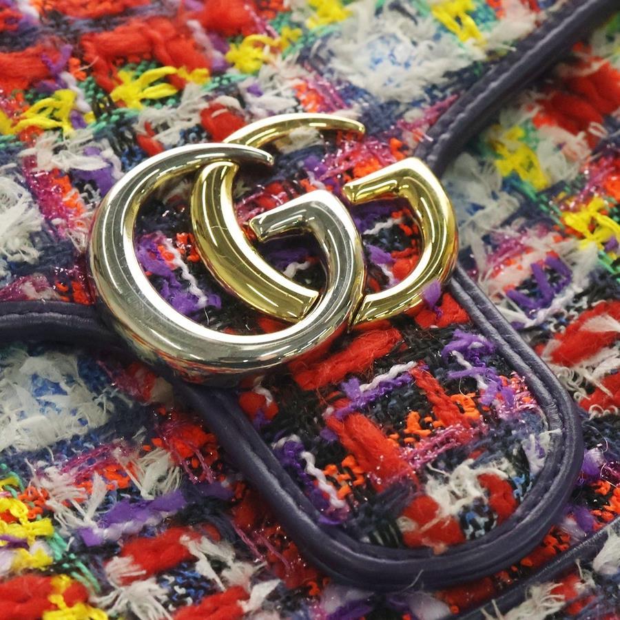 [モデル]GGマーモント ショルダーバッグ ハンドバッグ チェーンバッグ パープル×マルチカラー ゴールド金具 ツイード レザー 443497