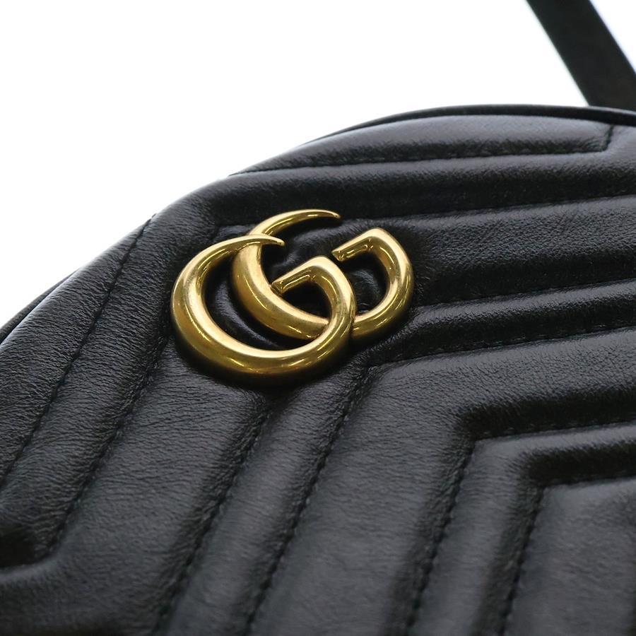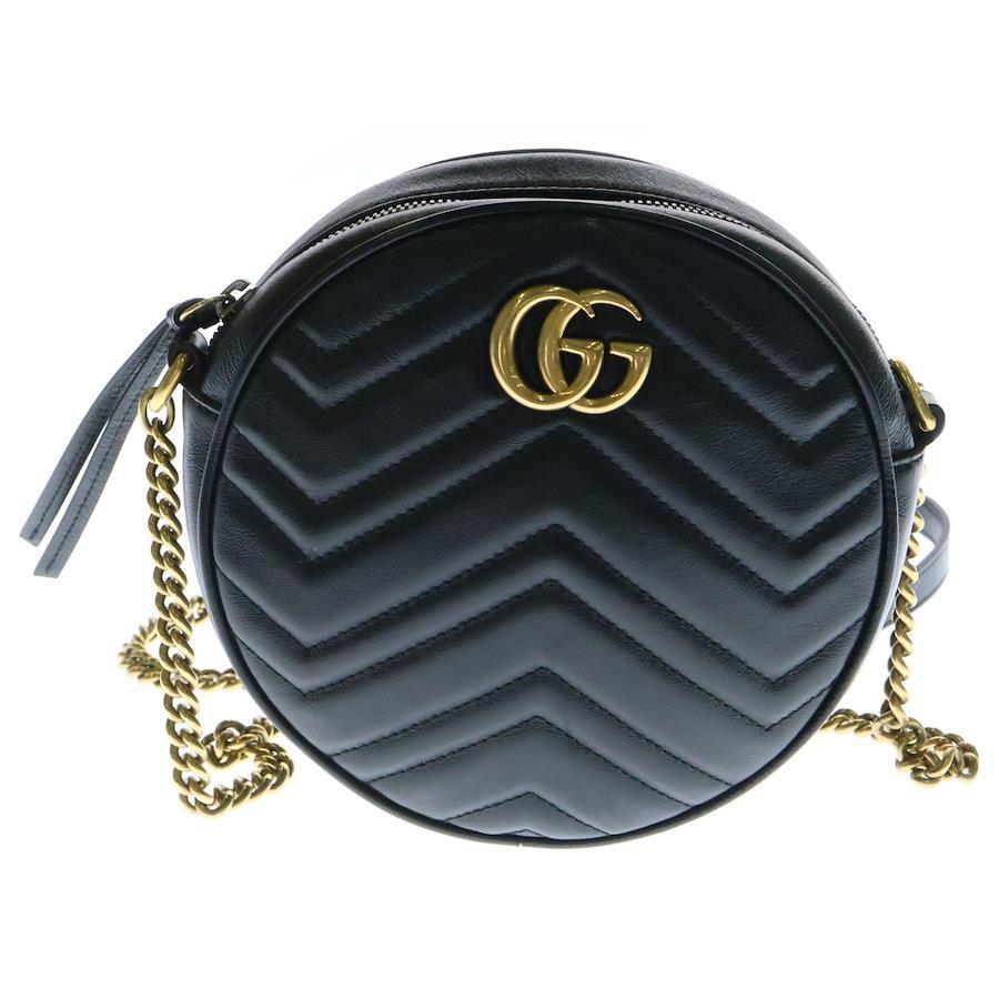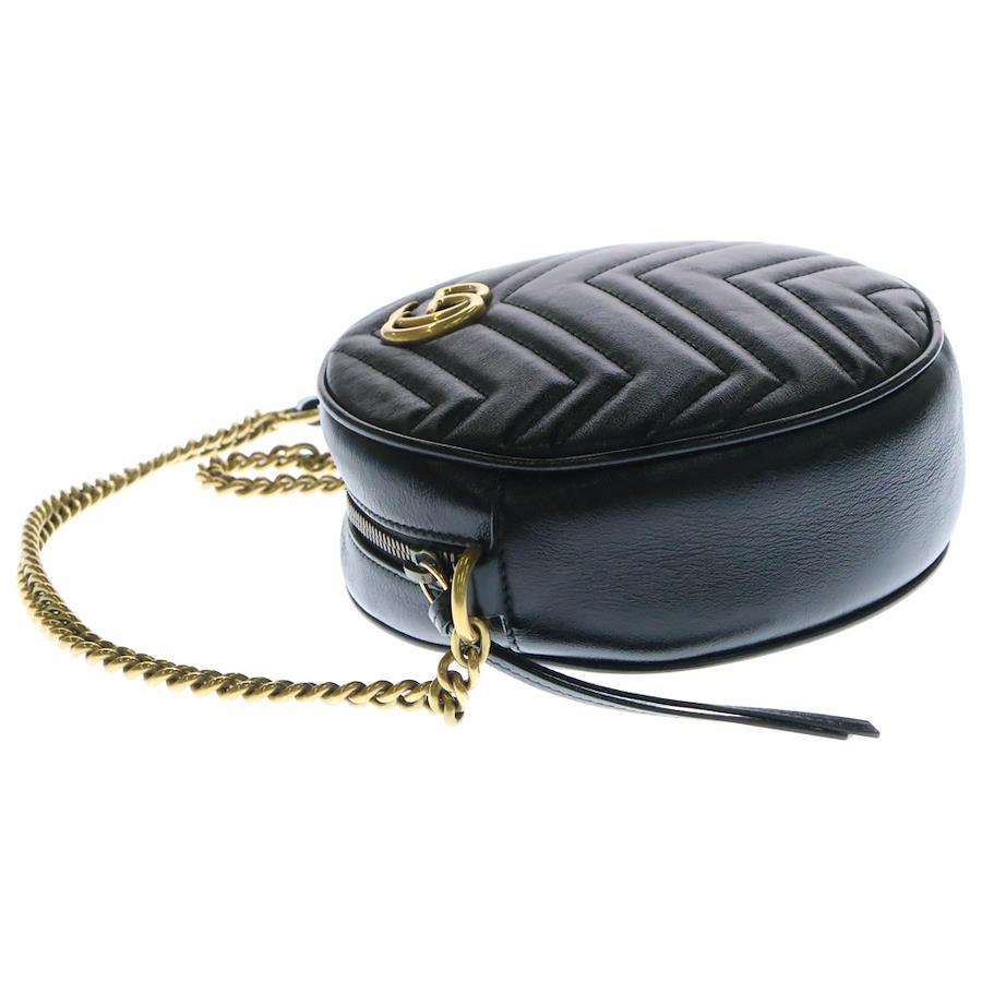 [モデル]GGマーモント ラウンドショルダーバッグ チェーンショルダー ブラック ゴールド金具 レザー 550154