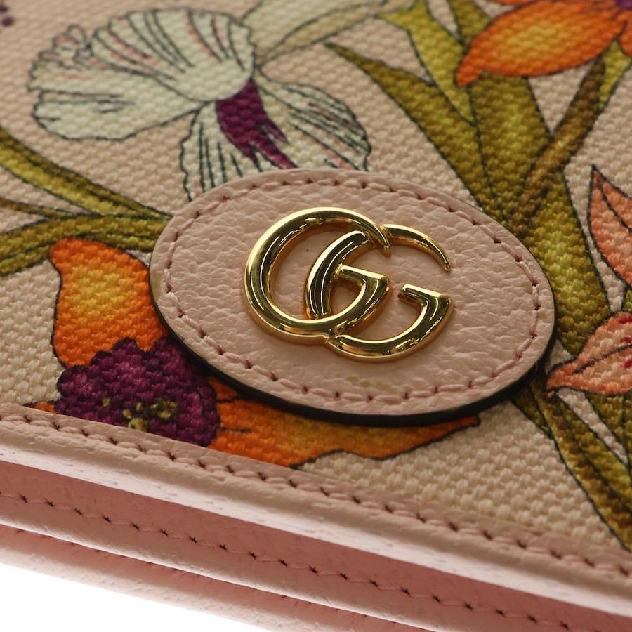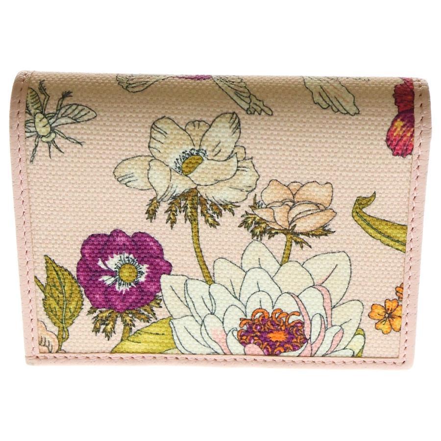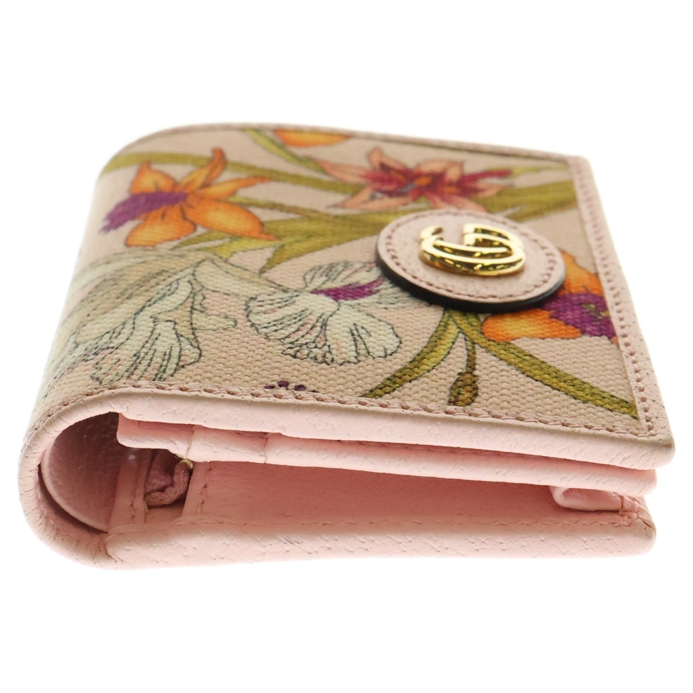 [モデル]GGマーモント 花柄 フラワー 二つ折り財布 コンパクトウォレット コインケース ピンク ゴールド金具 キャンバス 577347