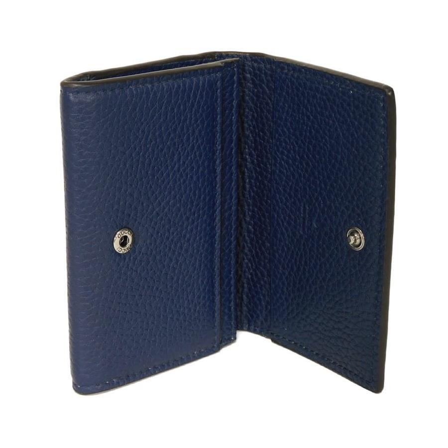 | 型押しカーフレザーにグッチのメタルロゴがあしらわれた「ロゴ フラップ カードホルダー」スナップ式二つ折りカードケースです。 |
