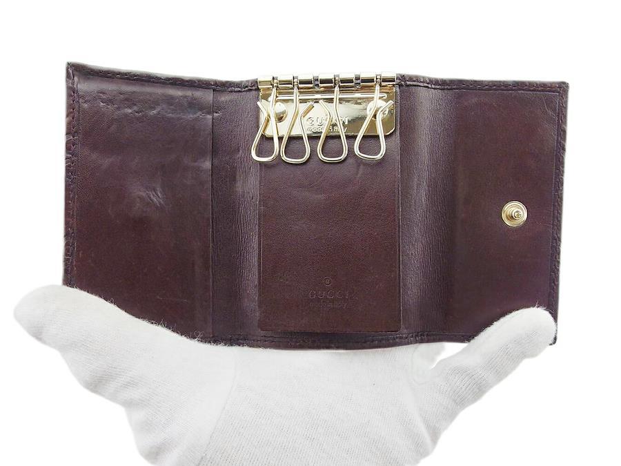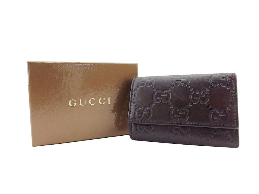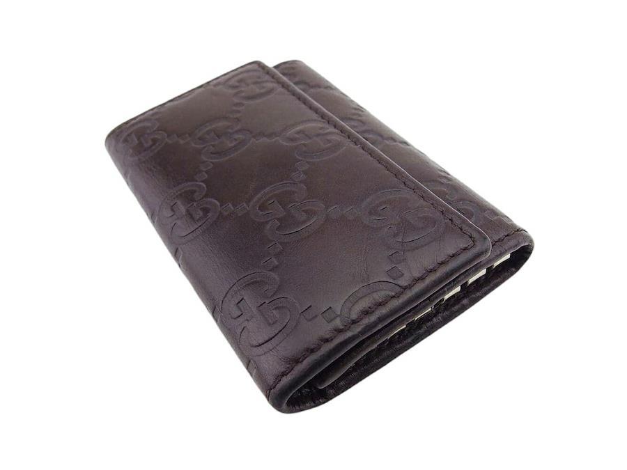 Pre-owned Gucci key case in dark brown, Guccissima, for women.
