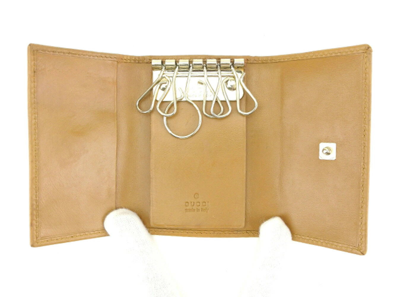 [24% OFF Coupon] Gucci Double G Key Case, Beige and Gold, Women's, Pre-owned