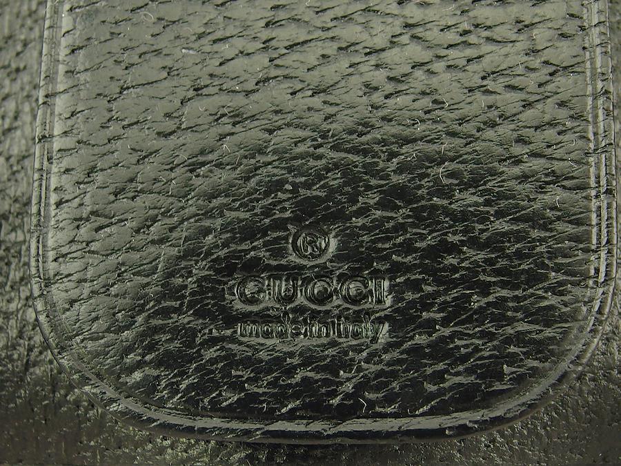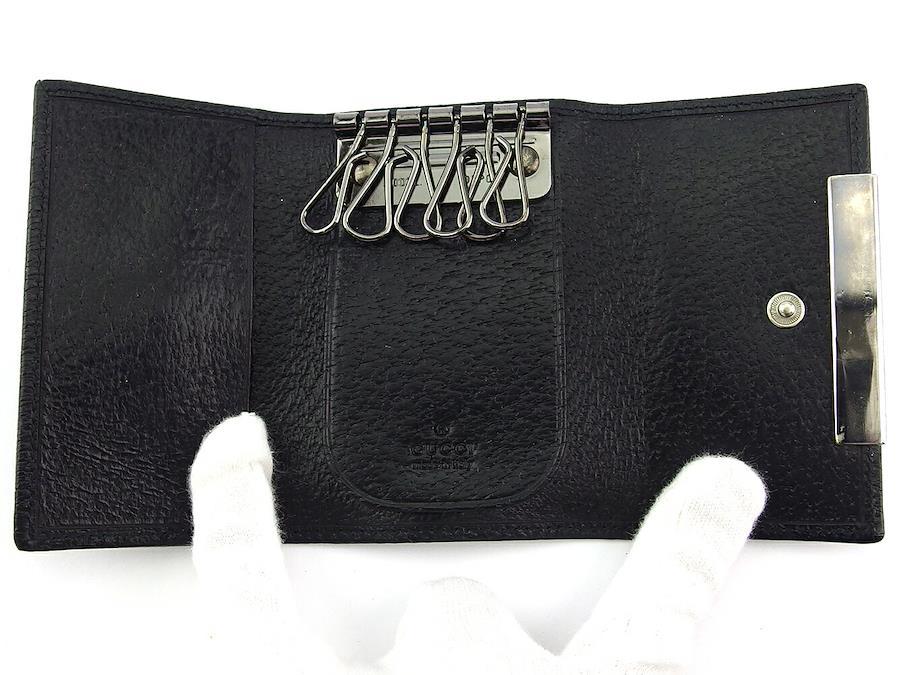 Pre-owned Gucci key case with logo plate in black and silver for women
