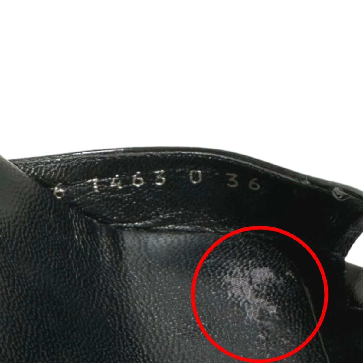 | 外側 | ランク:B 表面:キズ、汚れ、スレ 切り替えし部分:スレ 底にスレあり(画像7枚目参照) 表面にスレやキズ、汚れあり ヒール部分に汚れあり |