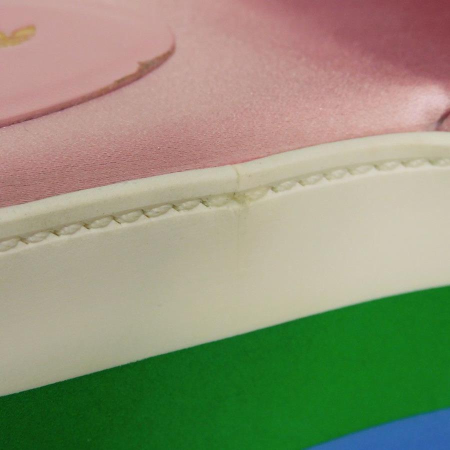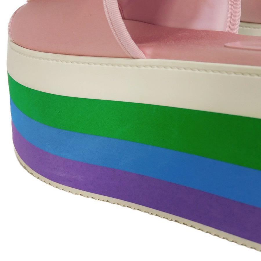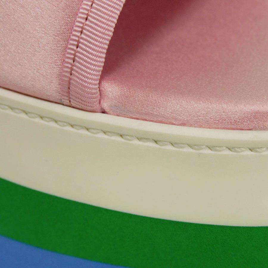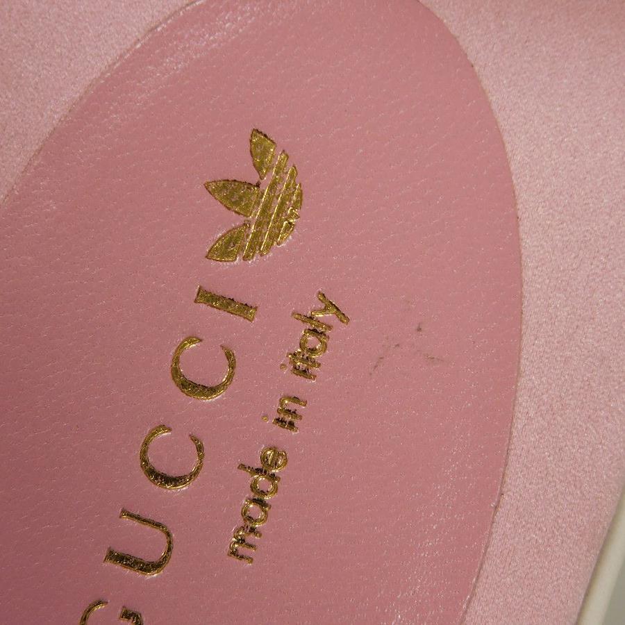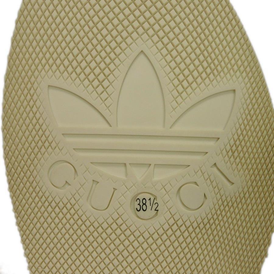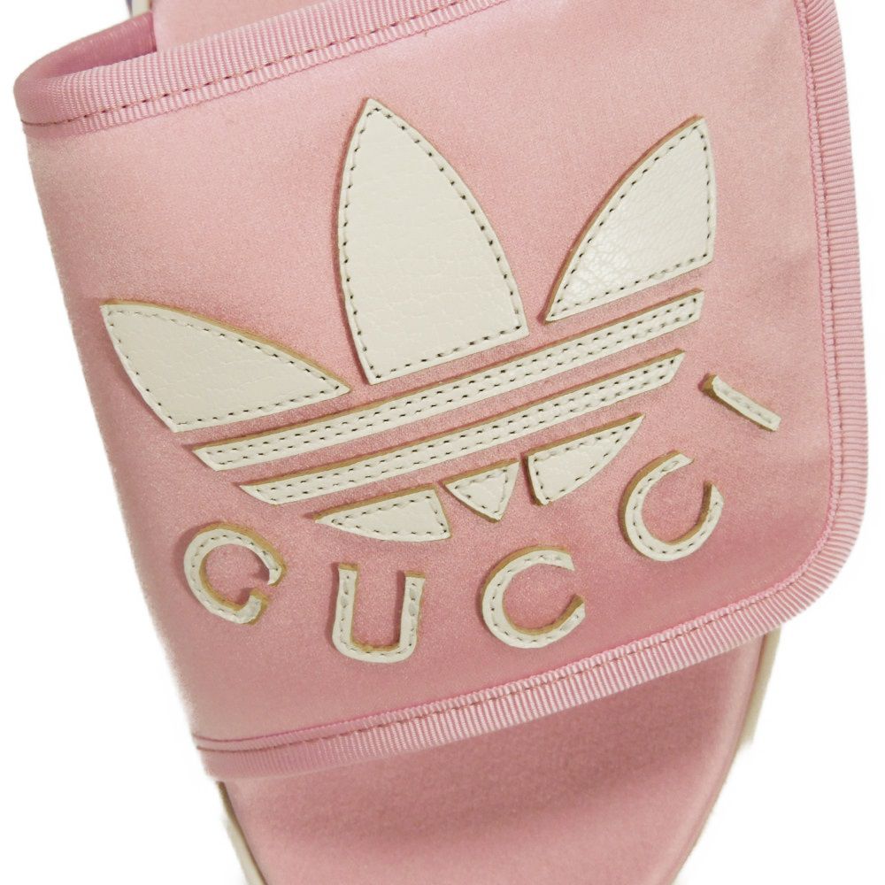 | シルク素材にグッチのロゴとアディダスのモチーフがあしらわれた「トレフォイル プラットフォーム」厚底サンダルです。 |