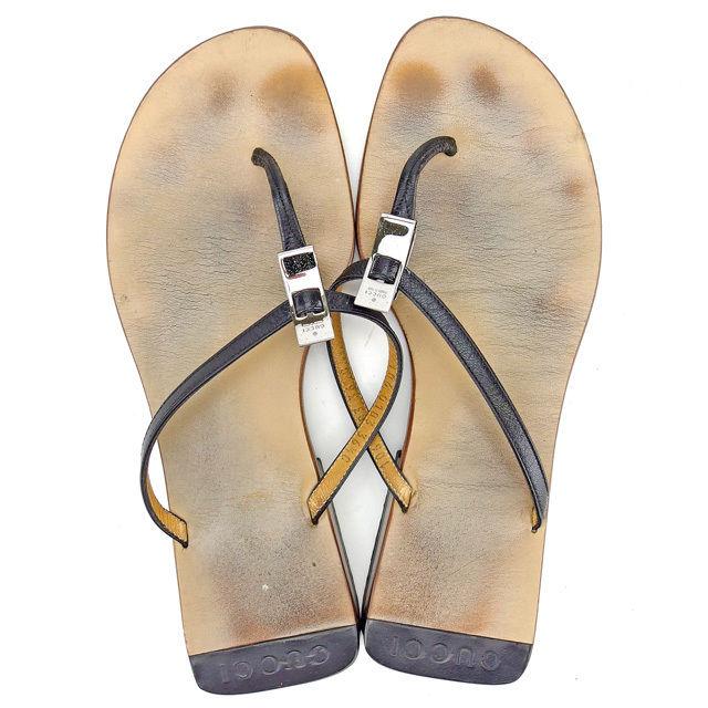 [24% OFF Coupon] Gucci Thong Sandals with Logo Plate, #36 Half C, Black and Silver, Women's, Pre-owned