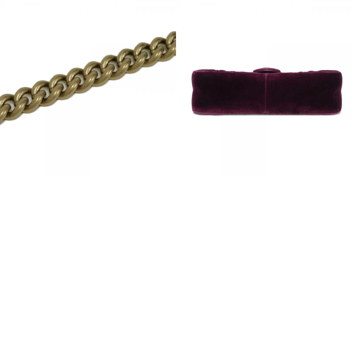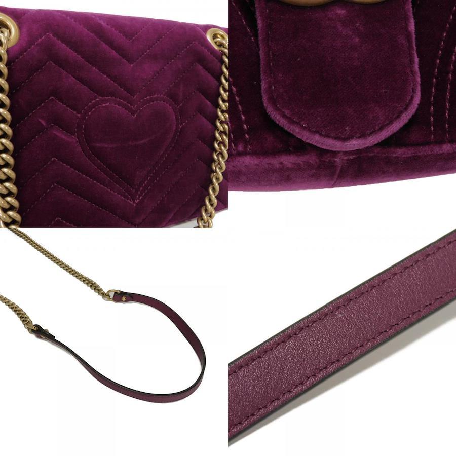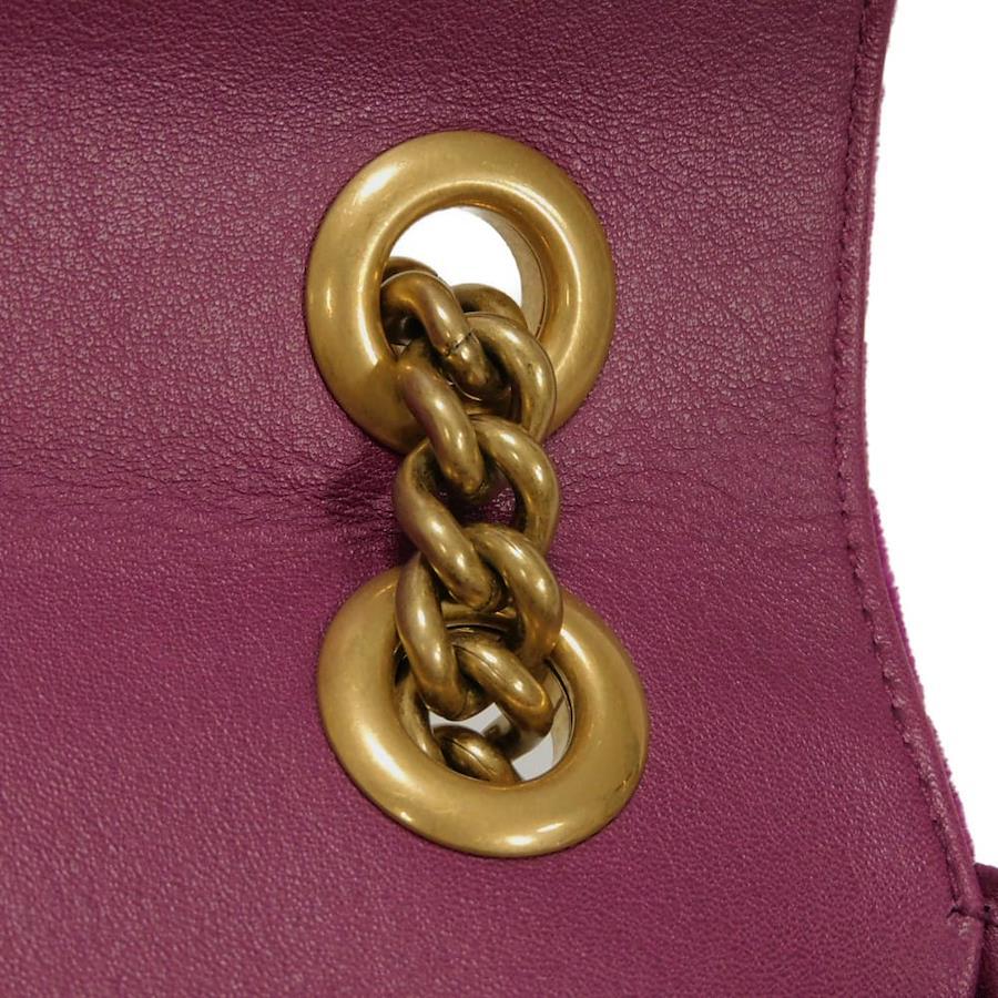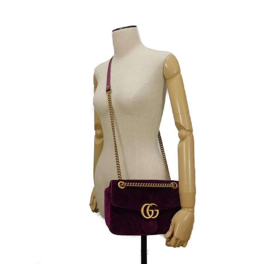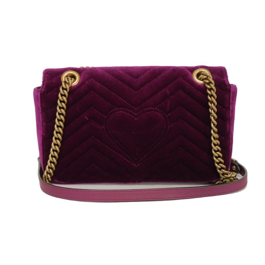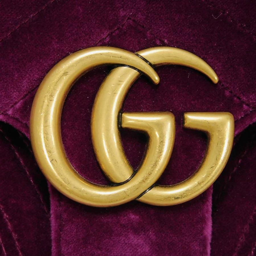 | シェブロンステッチが施されたベルベット素材にグッチのダブルGがあしらわれた「GGマーモント ミディアム チェーンバッグ」ショルダーバッグです。 |