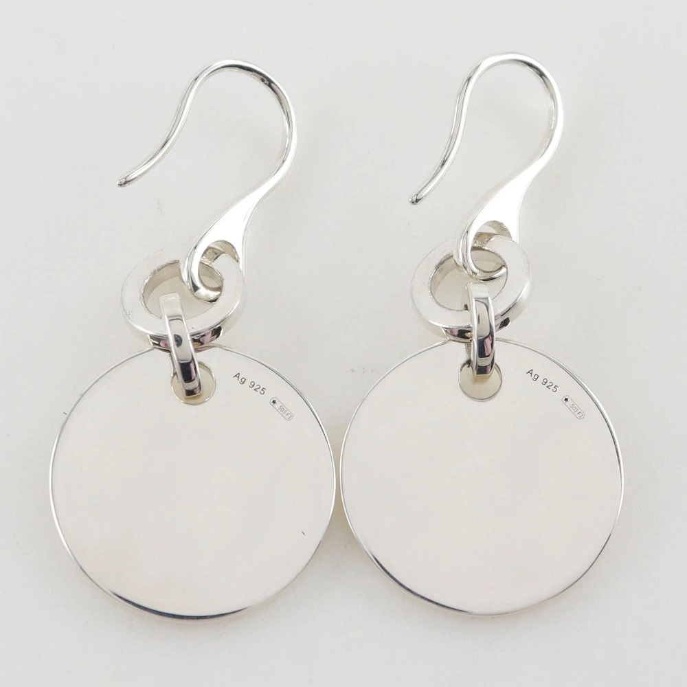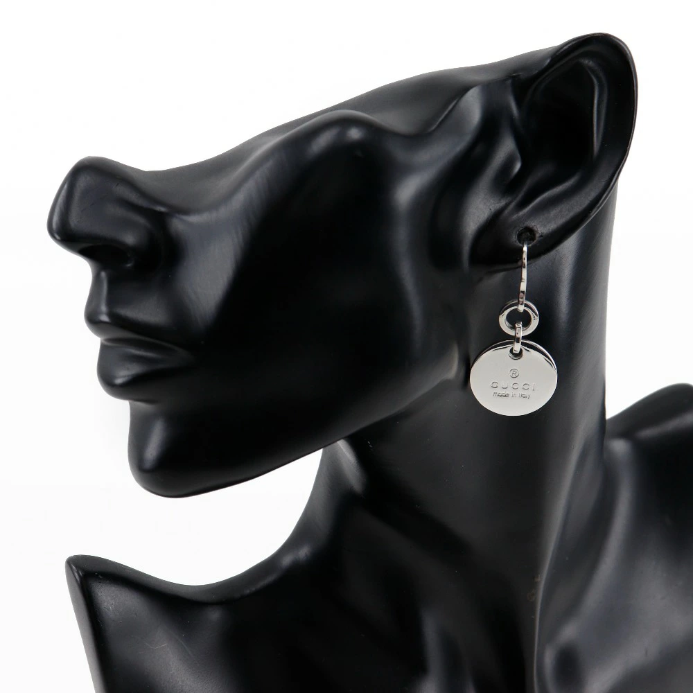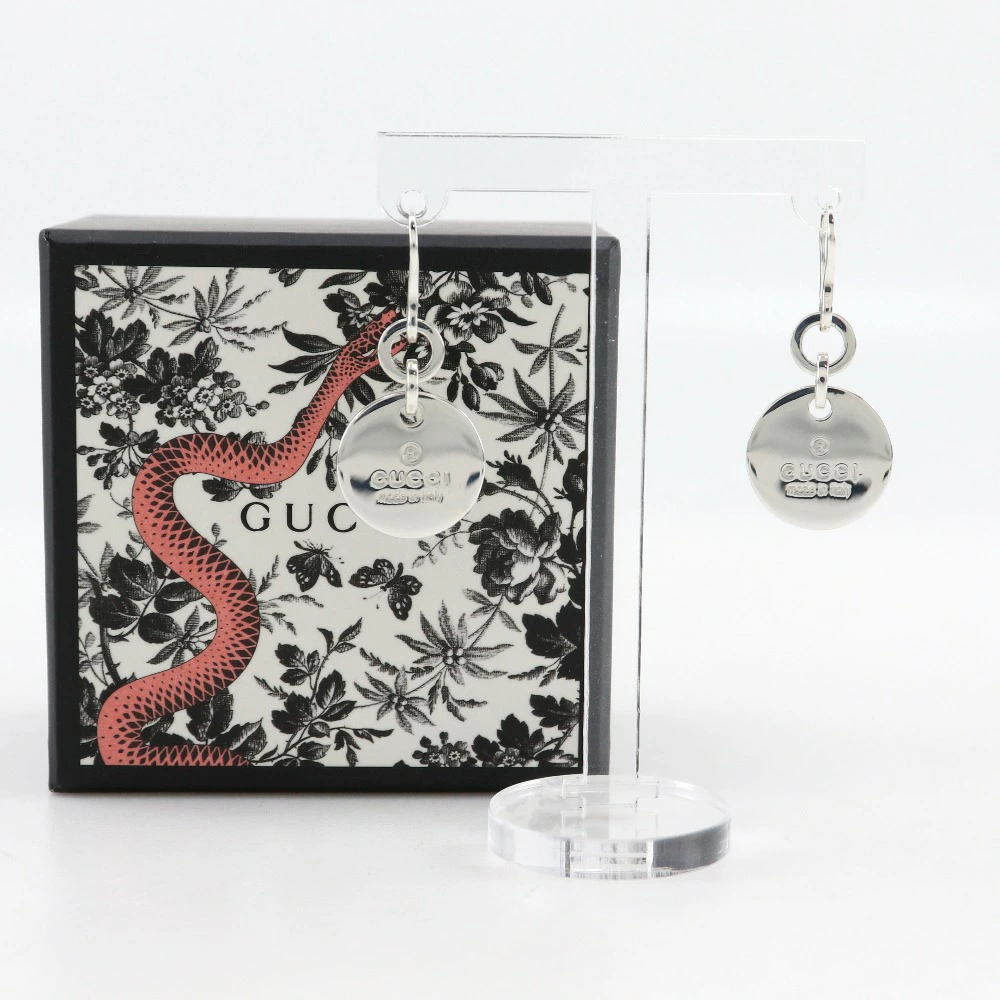Gucci Trademark Earrings with Logo, Round, Sterling Silver, Approx. 12.1g, Women's, Pre-owned, A-Rank