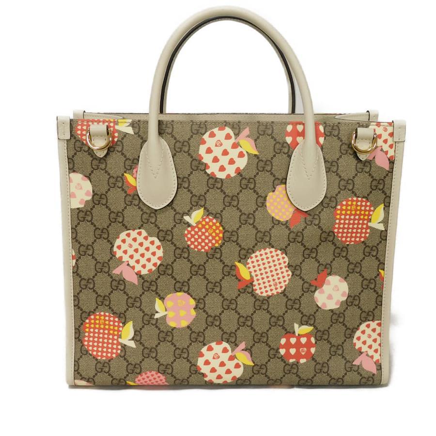 | グッチのGGスプリームキャンバスにカラフルなリンゴモチーフがプリントされた「レ・ポム スモール トート」トートバッグです。 取り外し可能なストラップでショルダーバッグとしてもお使いいただけます。 |