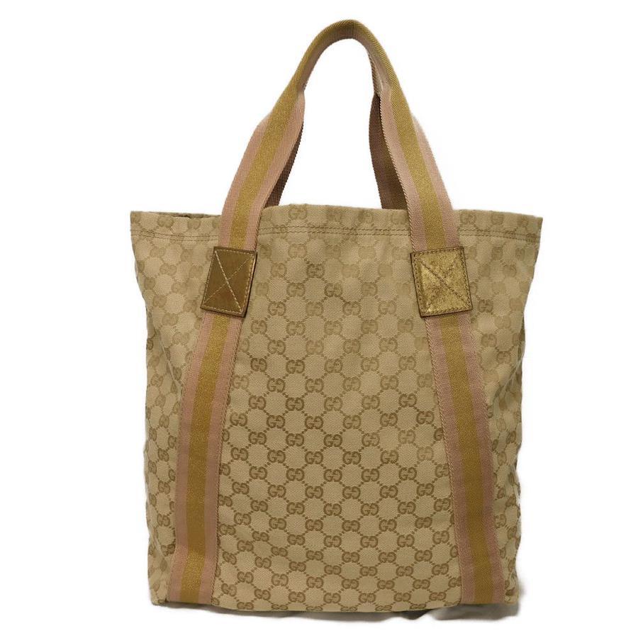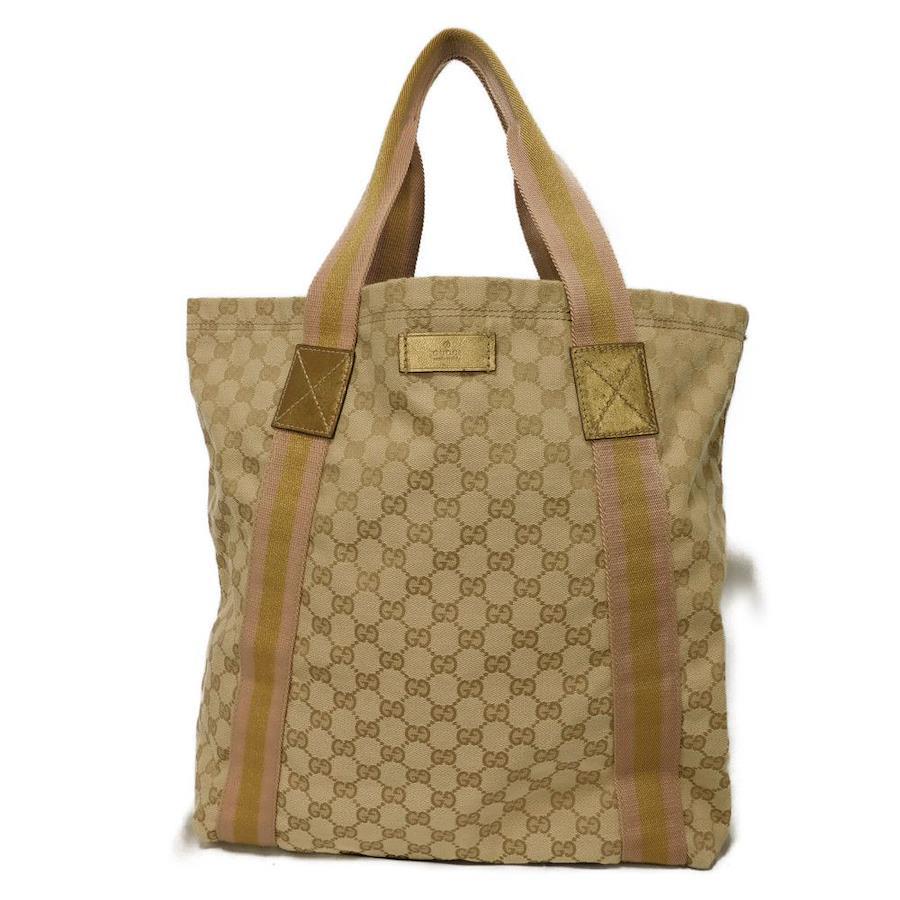 Pre-owned Gucci GG Canvas Tote Bag, A4 Size, Cotton Calfskin, Light Pink with Gold Embossed Logo, Beige, 189669. This elegant, high-quality, sophisticated ...