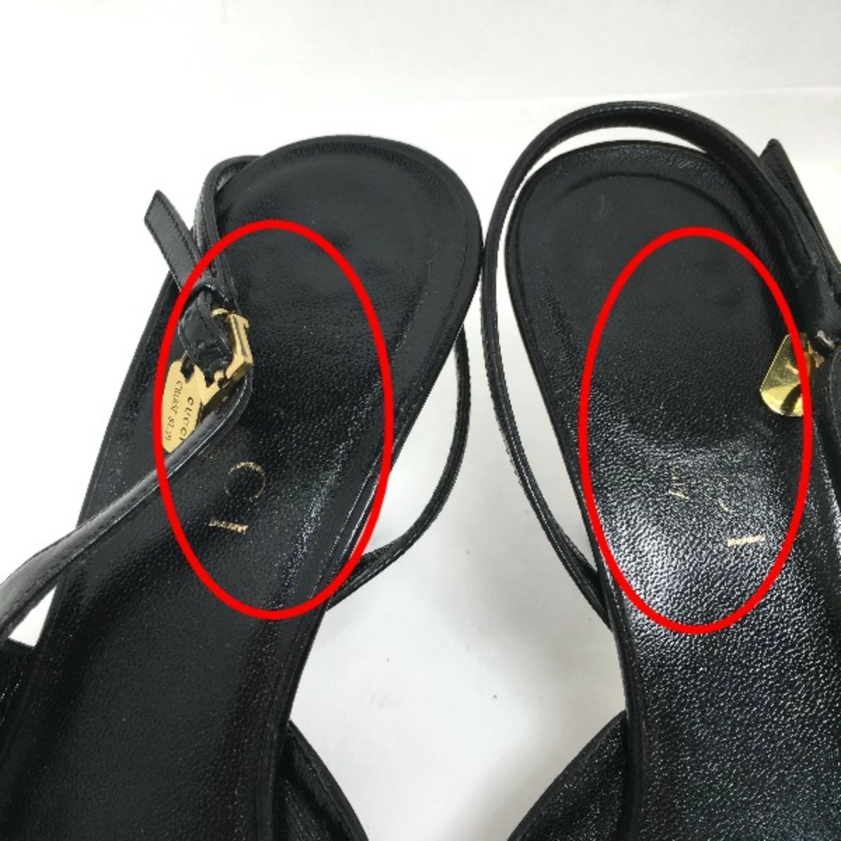 | 外側 | ランク:AB 表面:キズ、薄汚れ、シワ、凹み、補修有 ヒール部分に欠けあり(画像13枚目参照) 全体的にシワあり |