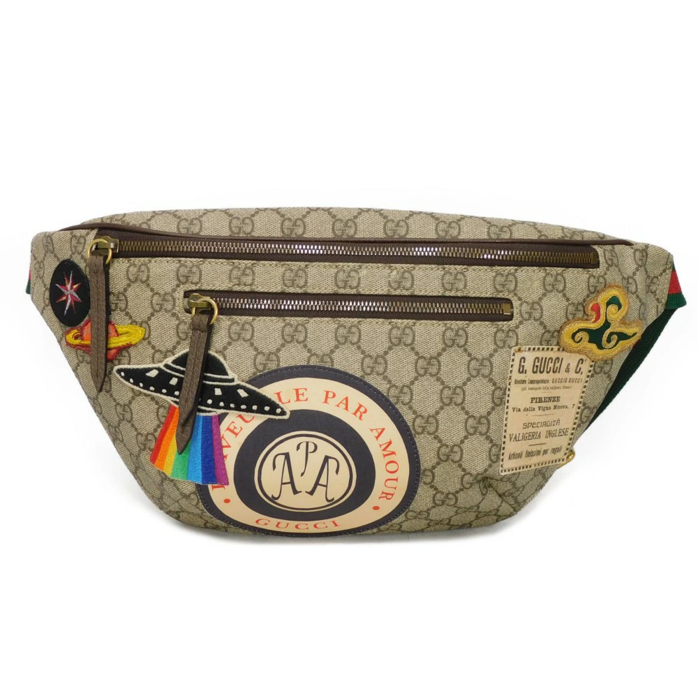GGスプリームキャンバスにグッチのエンブロイダリーちウェブストライプを組み合わせた「クーリエ ベルトバッグ」ボディバッグです |