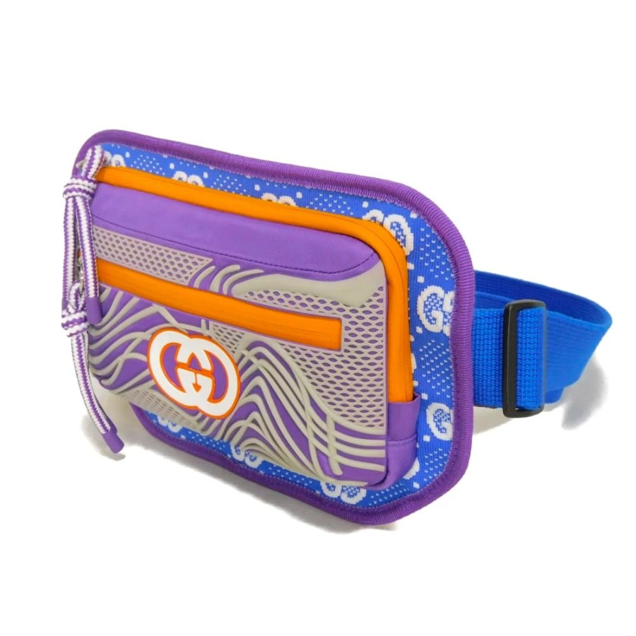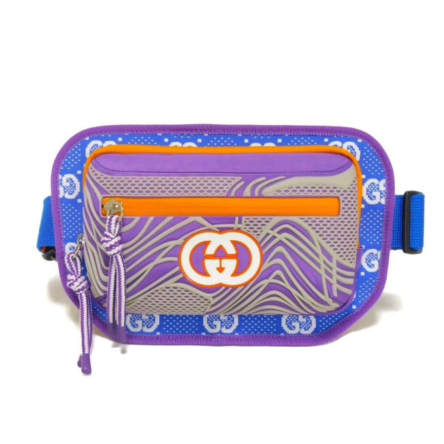 | カラフルなデザインのナイロンジャージーにグッチのインターロッキングGがあしらわれた「GGナイロン ベルトバッグ」ボディバッグです。 |