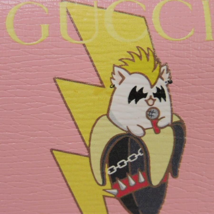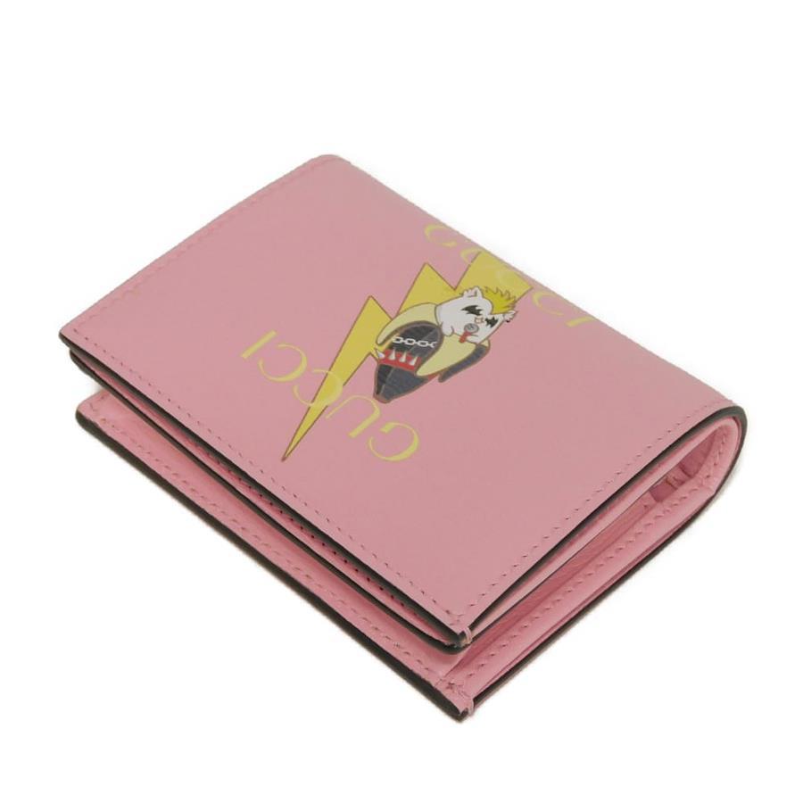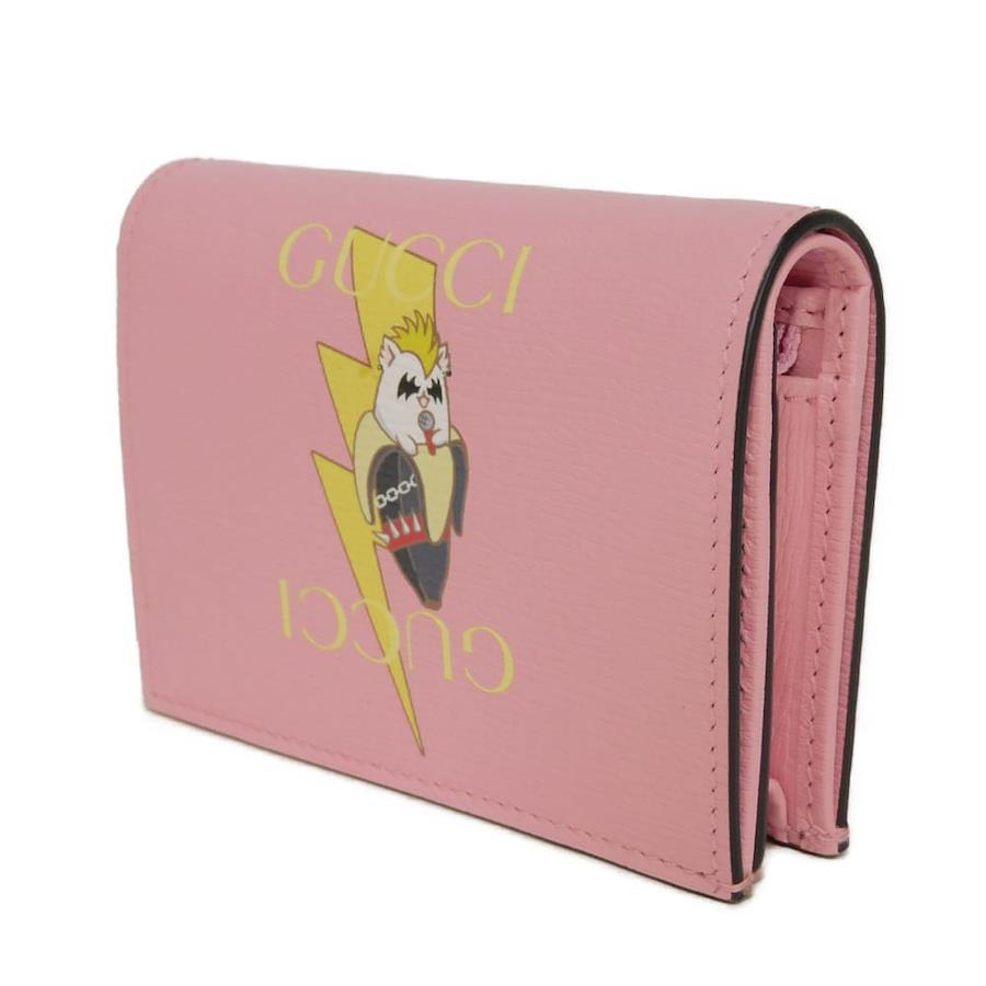 | カーフレザーにグッチのロゴとライトニングボルトモチーフがプリントされた「ばなにゃ コンパクト ウォレット」スナップ式二つ折り財布です。 |