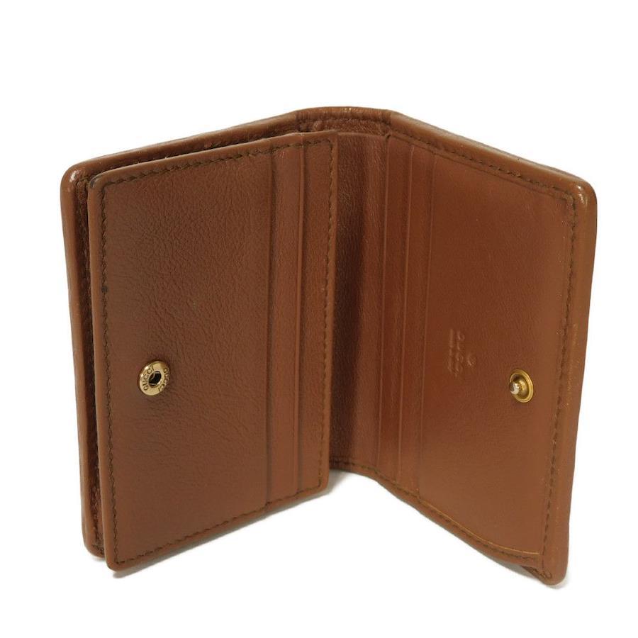 | ダイゴナルステッチが施された、カーフレザーにグッチのGGマーモントがあしらわれた「ダブルG コンパクト ウォレット」スナップ式二つ折り財布です。 |