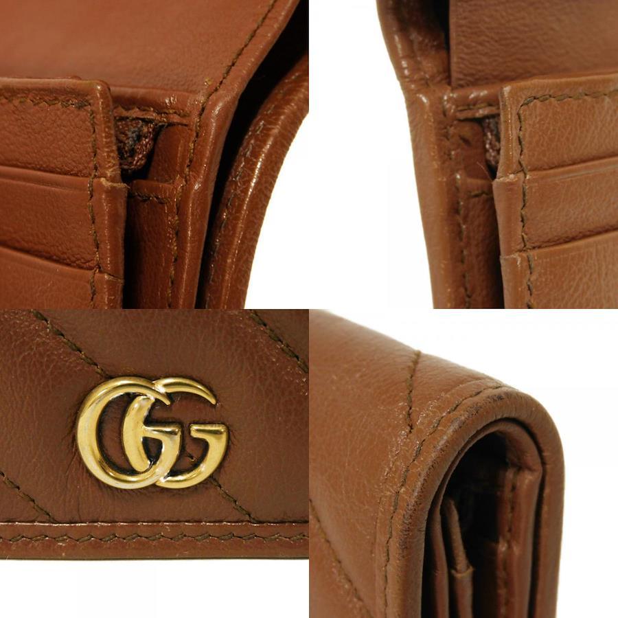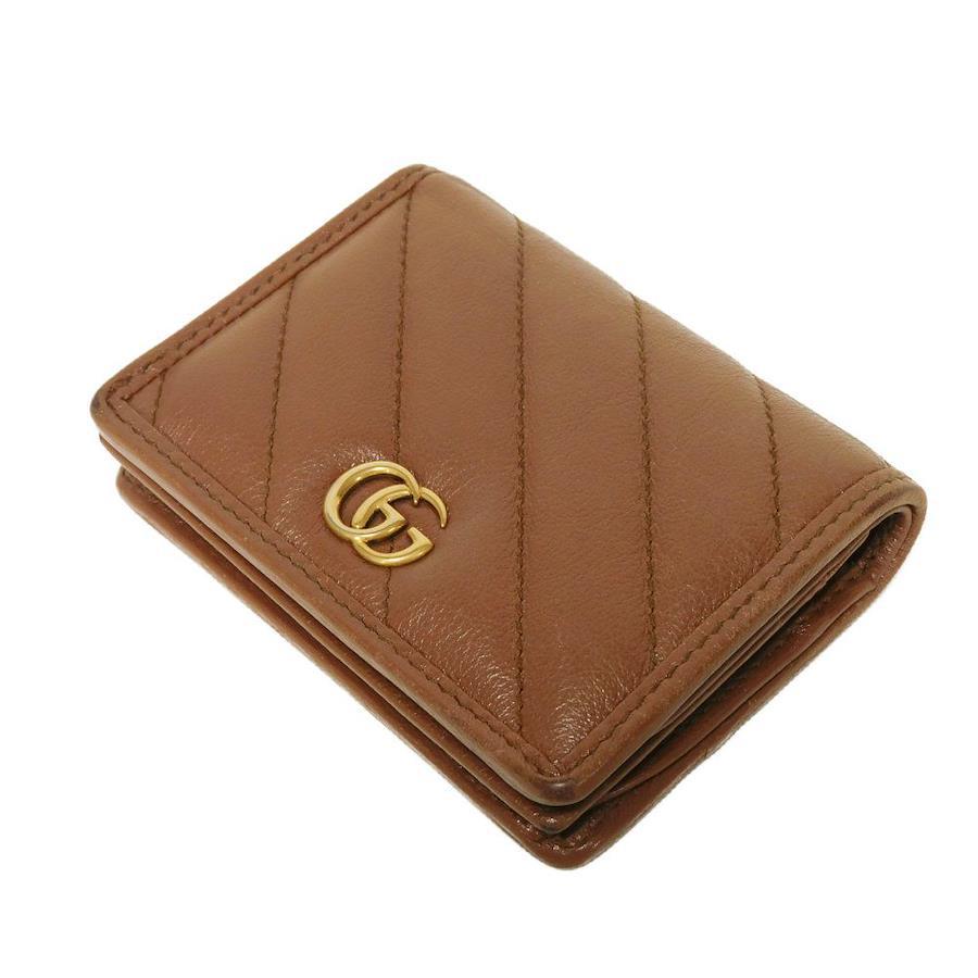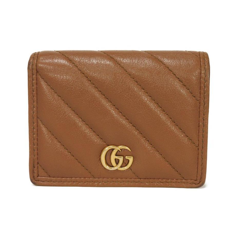 | ダイゴナルステッチが施された、カーフレザーにグッチのGGマーモントがあしらわれた「ダブルG コンパクト ウォレット」スナップ式二つ折り財布です。 |