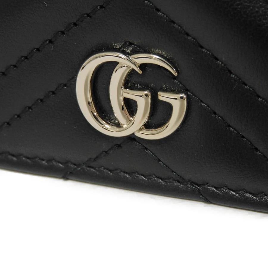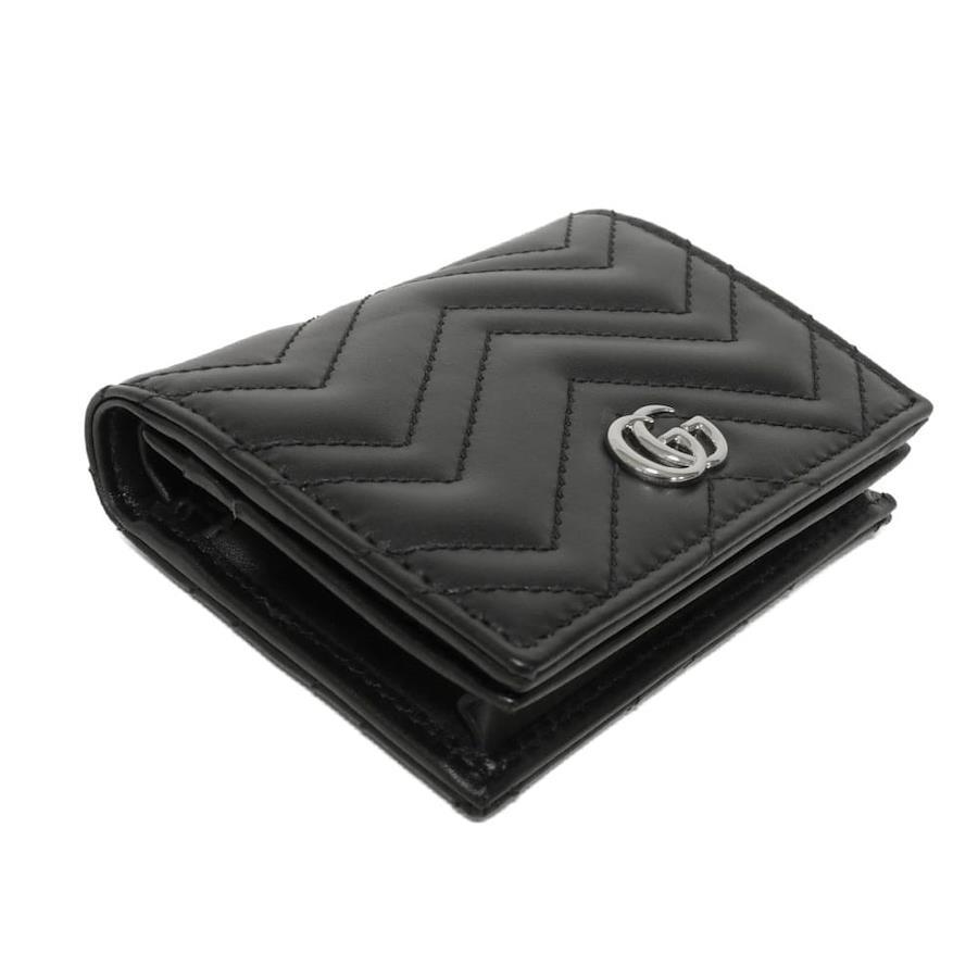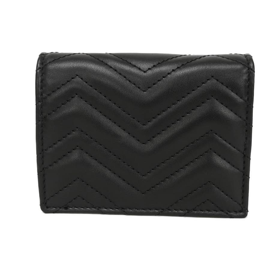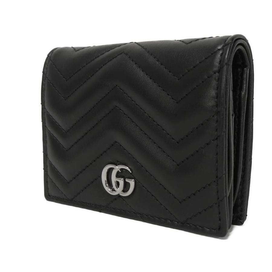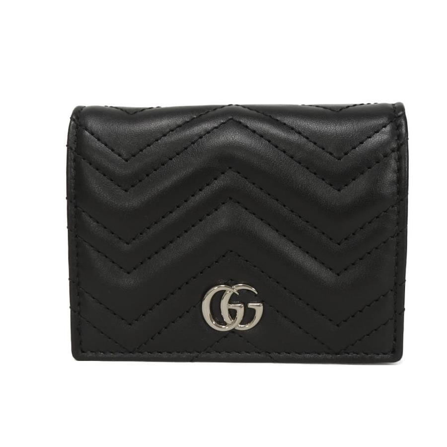 | キルティングステッチが施された、カーフレザーにグッチのGGマーモントがあしらわれた「ダブルG ミニ ウォレット」スナップ式二つ折り財布です。 |