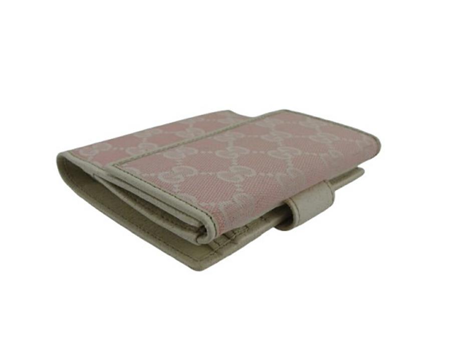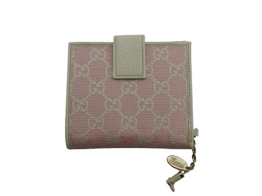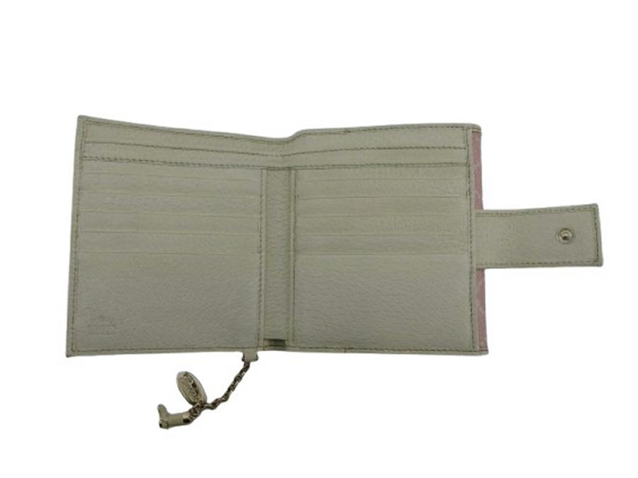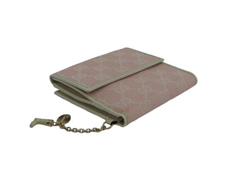 Pre-owned Gucci bifold wallet with GG print and boots charm, off-white and pink, women's