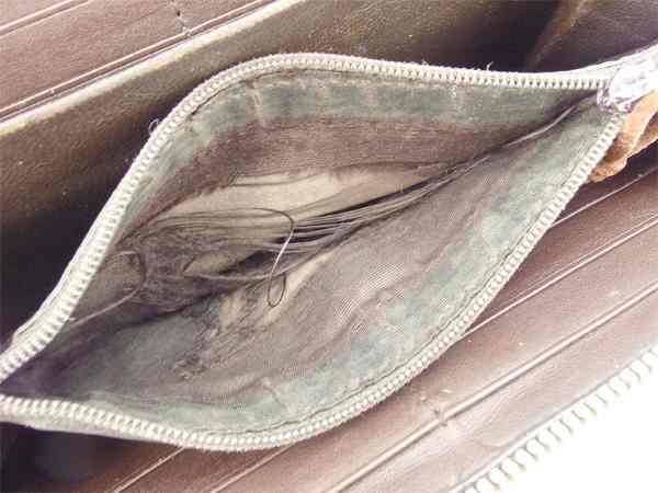 コンディション全体の状態詳細:かなりのダメージですがグランジ感をお求めの方におすすめです。その他 スレ キズ 汚れ 金具ハゲ 角ハガレ ベタつき(外側) ヤブレ(小銭入れ) 社外リペア跡(ファスナープル×2) など使用感があります。