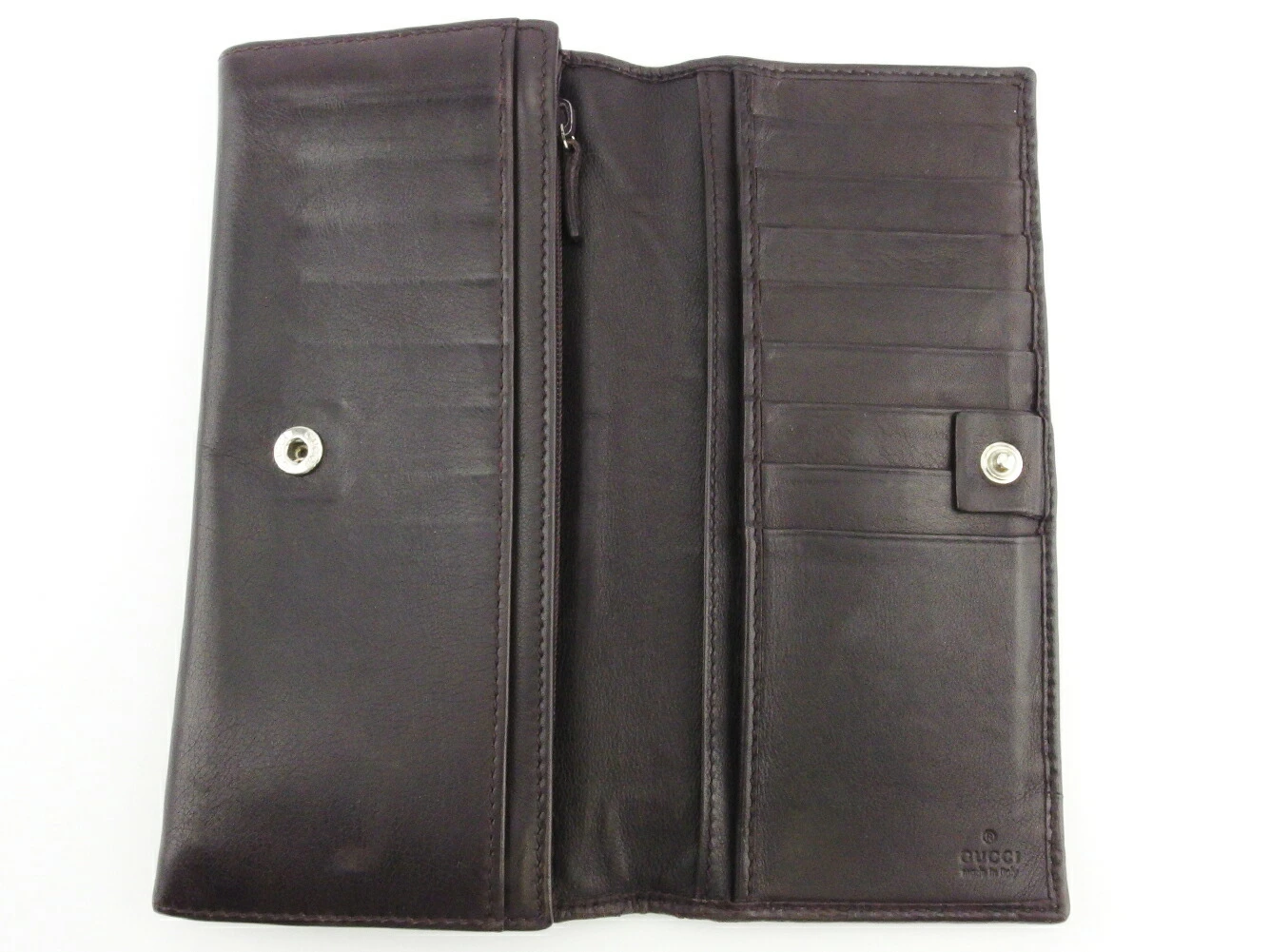 コンディション全体の状態詳細:まだまだ十分にお使いいただけます。社外リペア跡(角破れ1ヵ所コーティング)あり。その他 スレ&汚れ(内側&札入れ&小銭入れ&カード入れ&ポケットもあり) 傷 角スレ コバヒビ割れ(ファスナープル革) カード跡(内側) などの使用感があります。