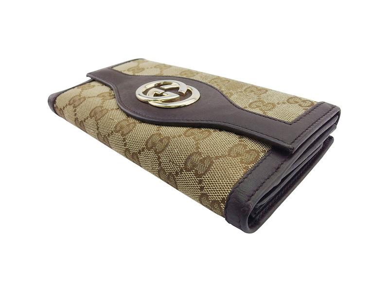 Pre-owned Gucci GG Canvas Sukey Interlocking G Long Wallet in Beige, Brown, and Gold. Women's.
