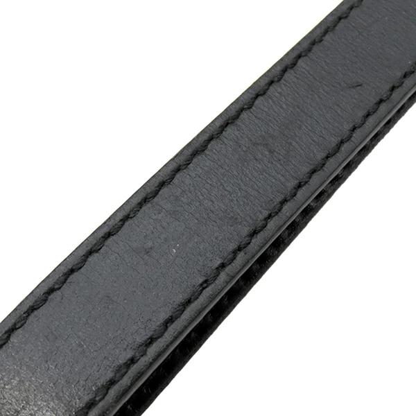 【外側】付属品含む黒レザーに擦れや薄汚れ、四つ角に僅かな擦れ、ショルダーに擦れや薄汚れ、クセ、ストラップにヒビ割れ、金具に擦れや小傷【内側】僅かな薄汚れ、ポケットに擦れや薄汚れ【におい】保管臭