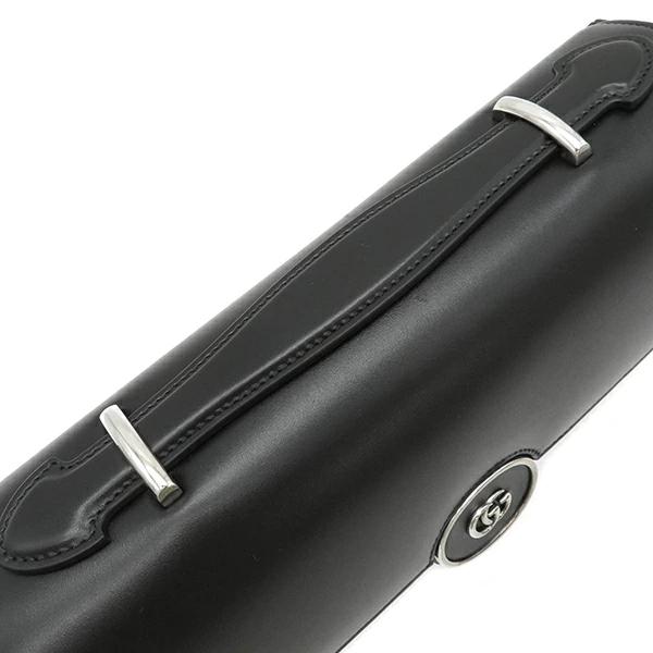 グッチ GUCCI 2WAYバッグ ダブルGプレート レザー ブラック 黒 ショルダー クラッチ シルバー金具 739721 レディース 【保存袋】定番 人気 美品 【中古】