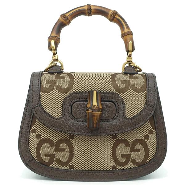 ▲クリックで拡大されますグッチ GUCCI 2WAYバッグ バンブー 1947 ミニ トップハンドルバッグ レザー ジャンボGGキャンバス ブラウン ショルダー ゴールド金具 - レディース 【保存袋】定番 人気 美品 【中古】