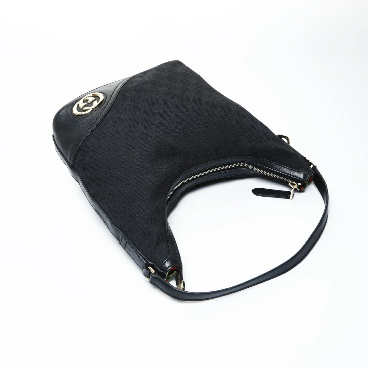 Pre-owned Gucci GG Canvas Interlocking G Shoulder Bag, Black, WS25031