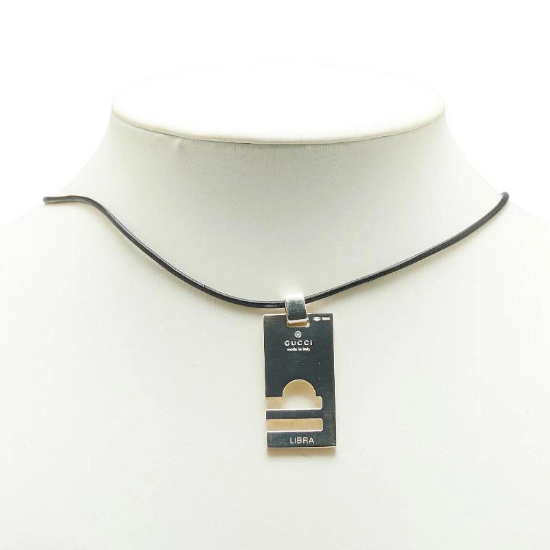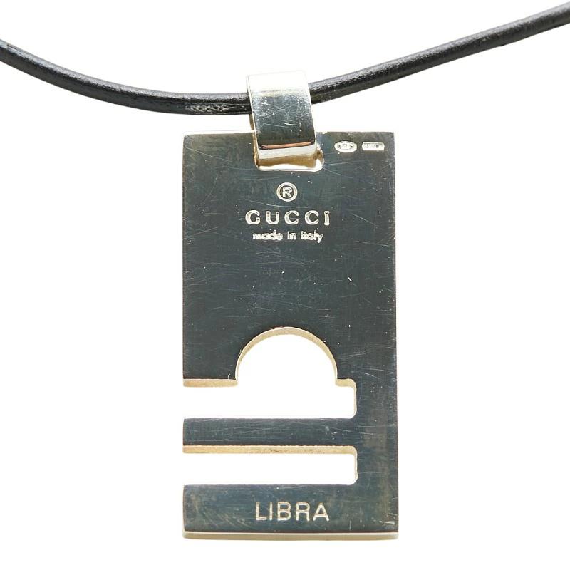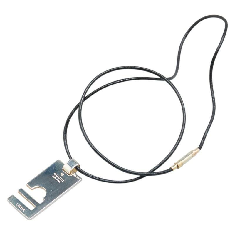 Pre-owned Gucci LIBRA necklace in silver and black SV925 with silver and leather. Women's.