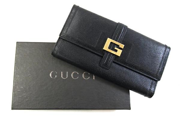 Gucci Double-Hook Long Wallet 035・3661・2204 Black Leather Pre-Owned Long Wallet Double-Opening Wallet Logo Women's GUCCI