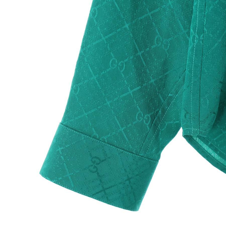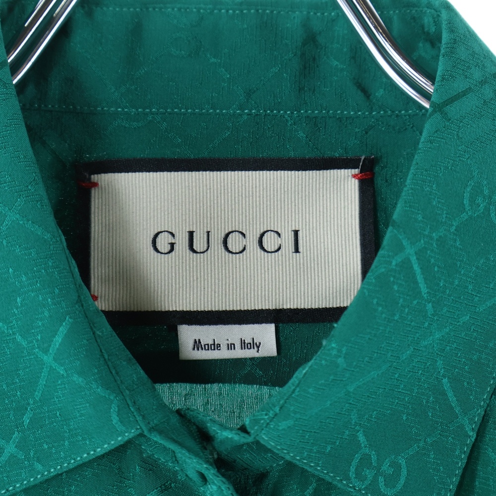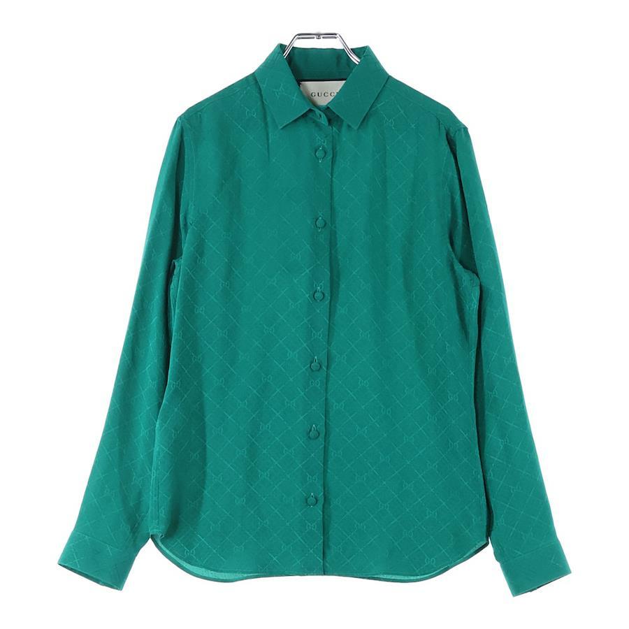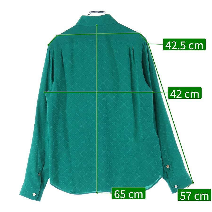 ■商品情報[商品番号]9025I190063[ブランド]GUCCI(グッチ)[モデル]ZADWP GG柄 総柄 GGボタン シルク 長袖シャツ グリーン 622196[サイズ]着丈:65センチ 身幅:42センチ 肩幅:42.5センチ 袖丈:57センチ表記サイズ:38■状態・コンディション[状態ランク]ランク S新品同様品または試着程度の使用感有り